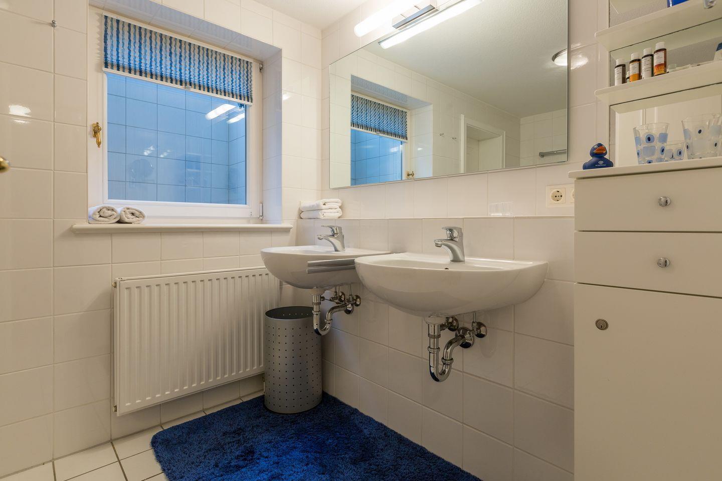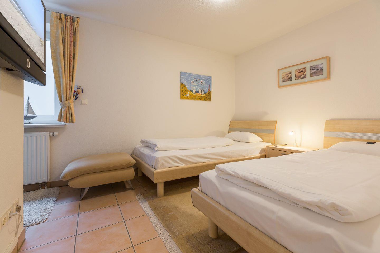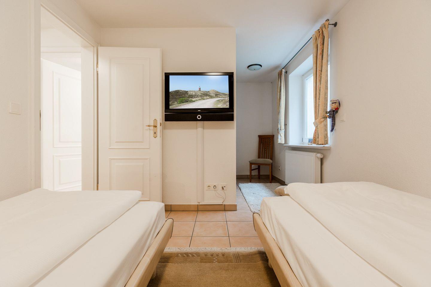Souterrain:1 Raum mit Doppelbett (180x200cm), 1 Raum mit 2 getrennten Betten (100x200cm) und TV. Schönes Bad mit WC, Doppelwaschtisch und Dusche. Waschmaschine und Trockner.
