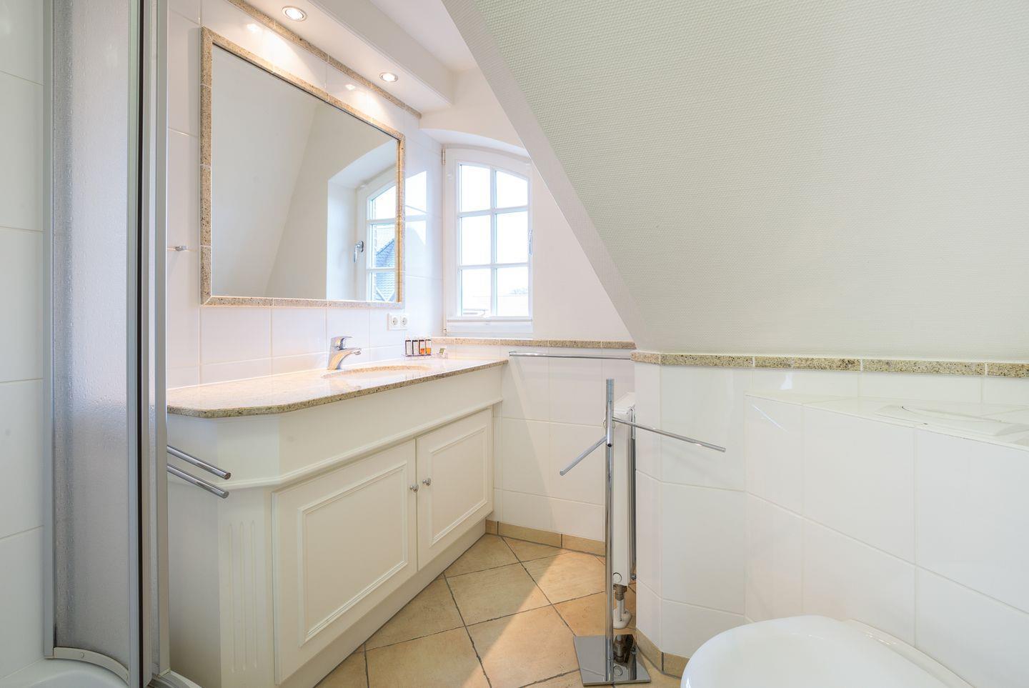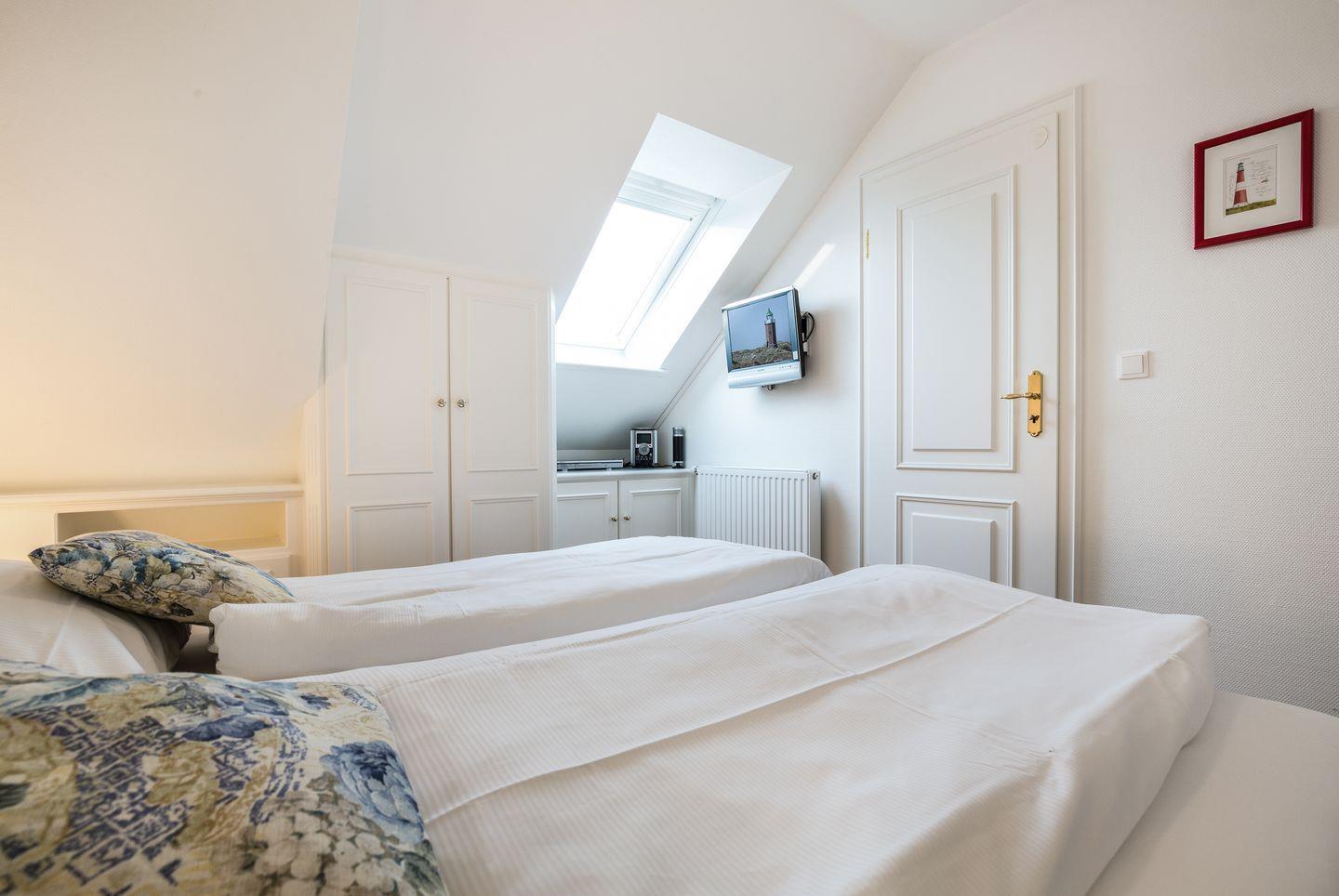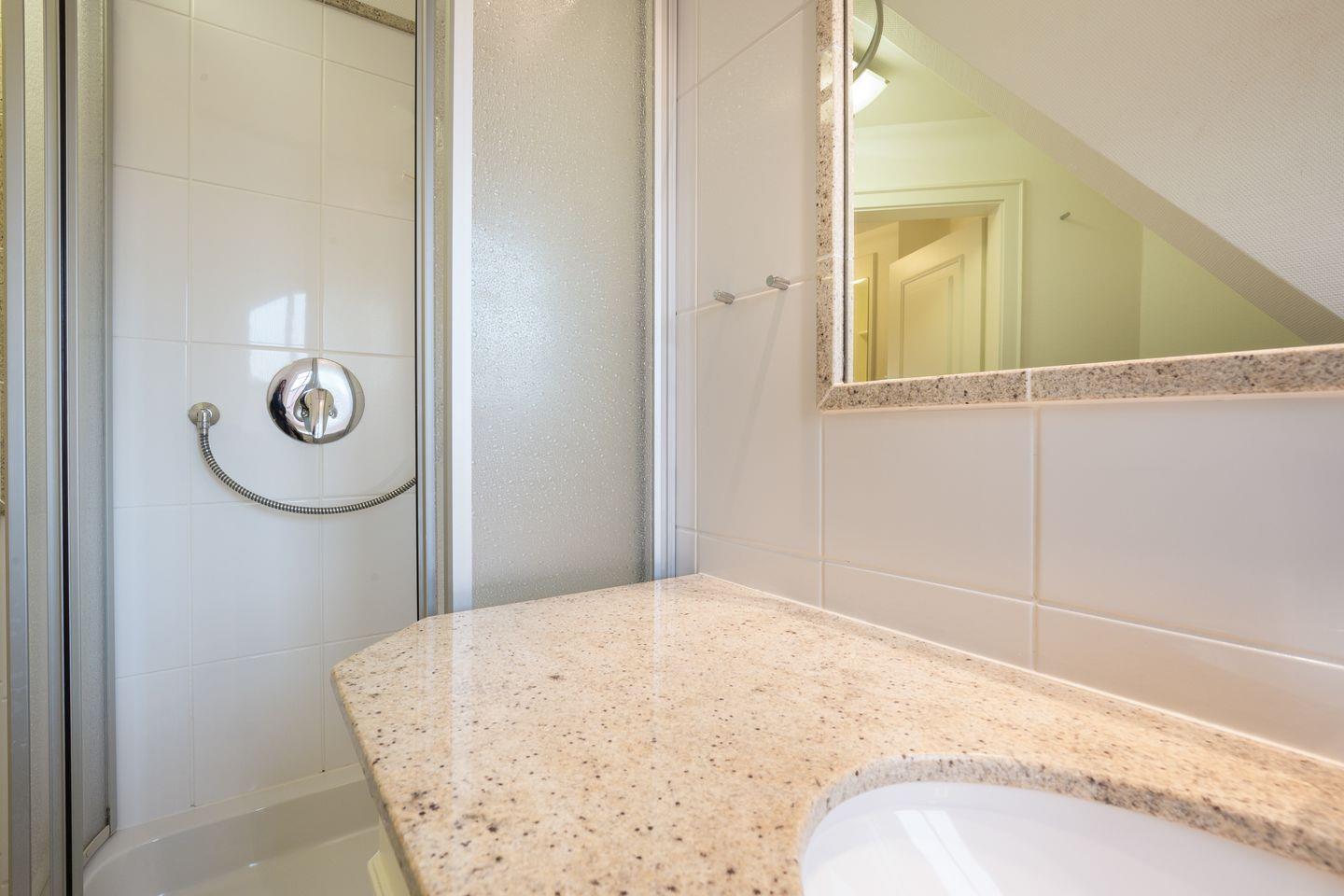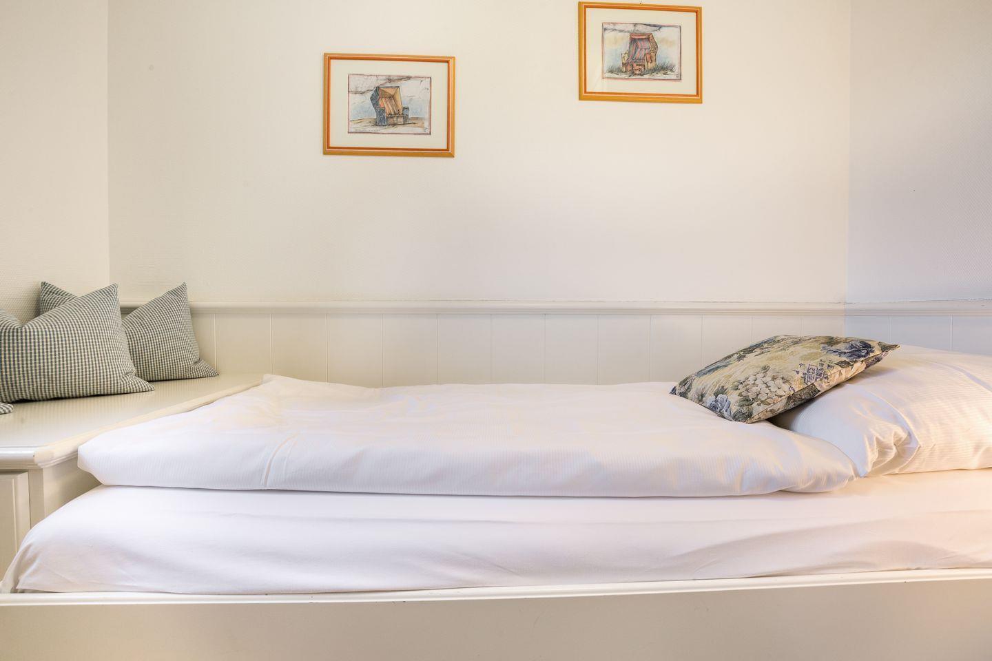 Obergeschoss: geschmackvoll möblierter Wohnraum mit fein selektierten Farben und Stoffen. Kabel-Flatscreen TV. Die integrierte Küche mit Geschirrspüler und einer Mikrowellen-/Backofenkombi. 1 Schlafraum mit einem Bett (90x200cm), das zusammen mit korrespondierenden Einbauschränken sehr schön in den Raum integriert ist. Bad mit großzügiger Dusche und WC. Sonniger West-Balkon.