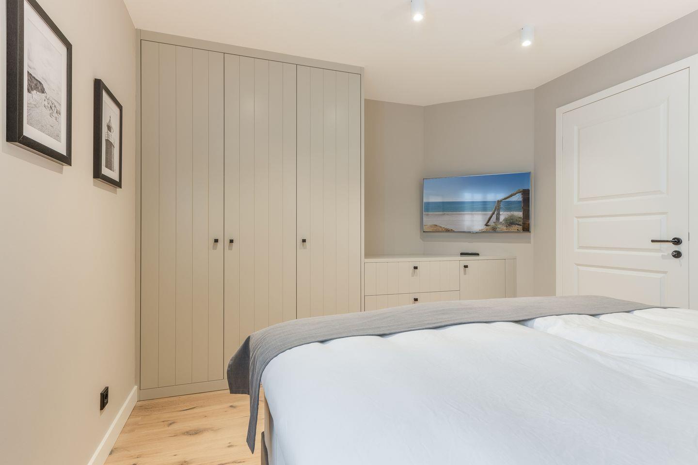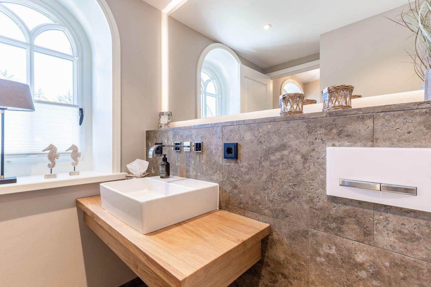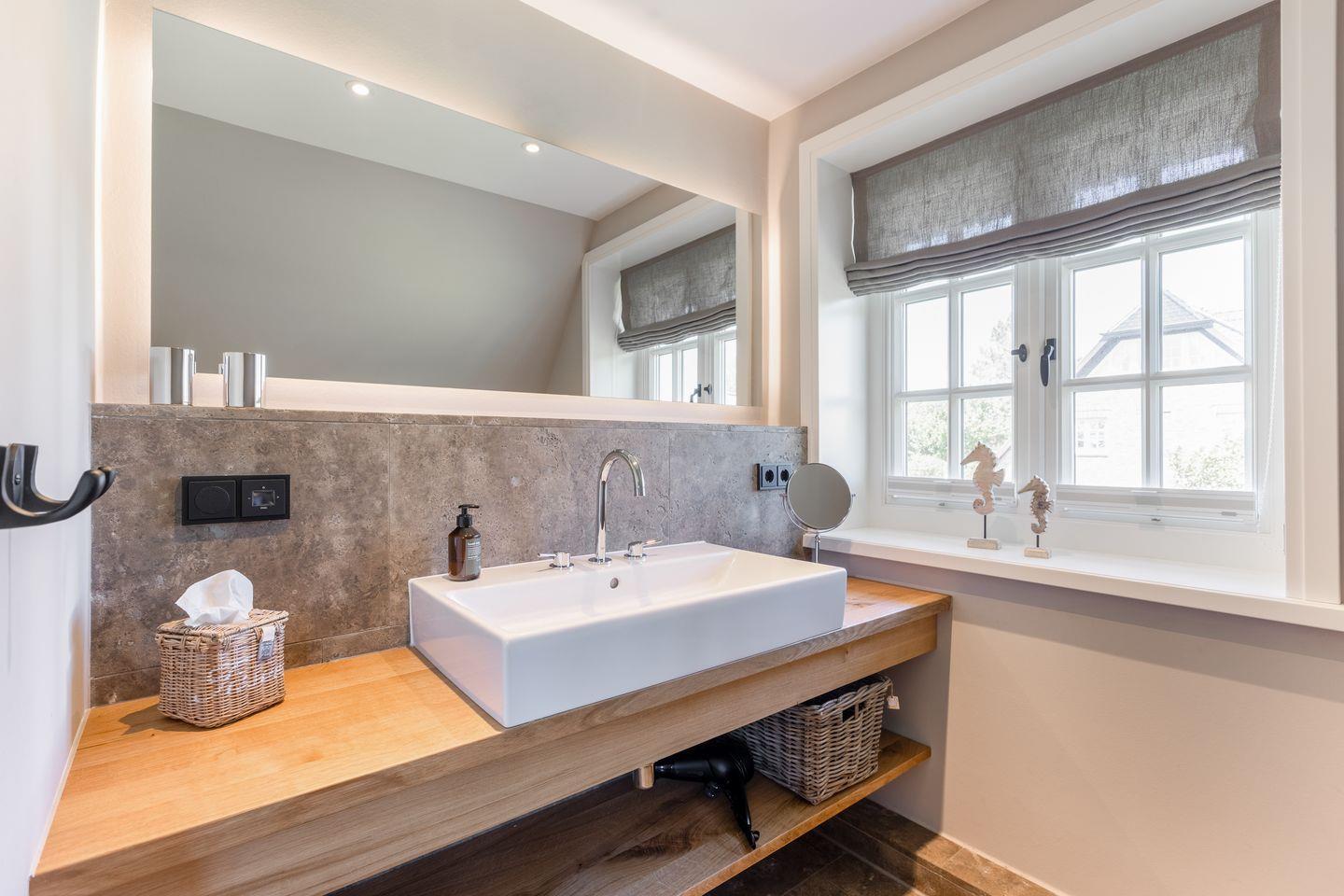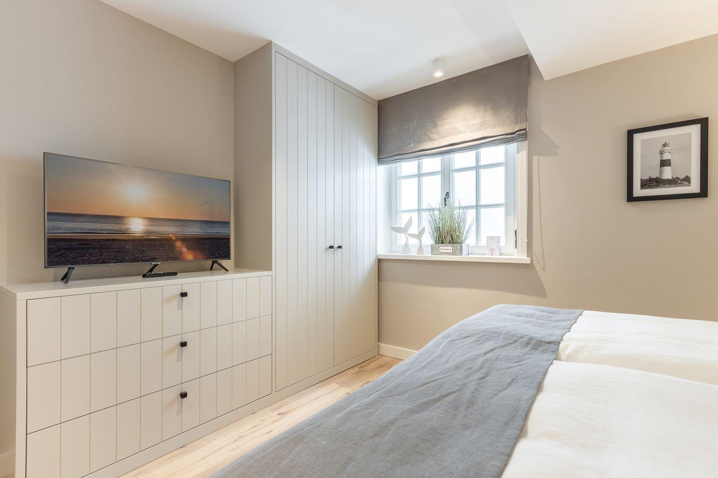 Im Obergeschoss des Hauses erwartet Sie ein Schlafzimmer mit Boxspring-Doppelbett und Flatscreen-TV sowie ein top-modernes Badezimmer mit Dusche und freistehender Badewanne, die zum Entspannen einlädt. Das Untergeschoss hält für Sie zwei weitere Räume mit je einem Boxspring-Doppelbett und Flatscreen-TV bereit. Eine weitere Besonderheit des Hauses ist das große Wellness-Badezimmer im Untergeschoss mit eigener Sauna, Regendusche und WC.