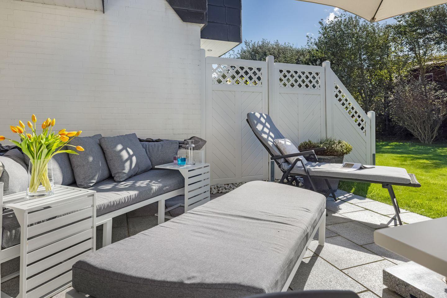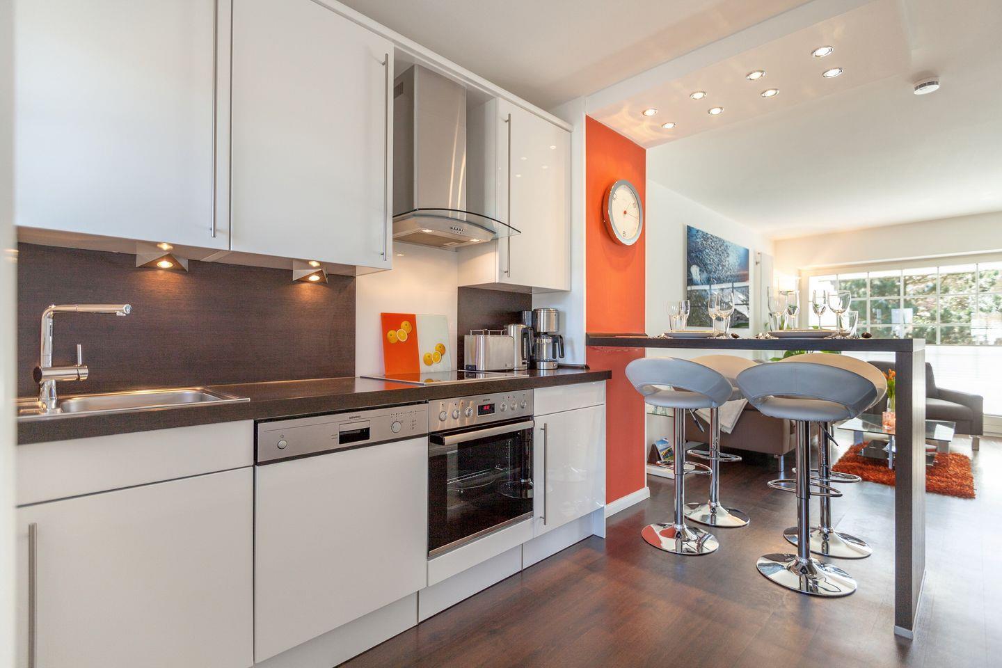 In ruhiger Lage in Wenningstedt zwischen Dorfteich und Dünen erwartet Sie dieses helle und moderne Appartement, das „Studio Veit“. Beim Betreten des Domizils erwartet Sie ein offen gestalteter Wohn- und Küchenbereich mit einer Essgelegenheit an der Bar, die die Küche vom Wohnbereich trennt. In der voll ausgestatteten Küche bleiben keine Kochwünsche offen. Vom Wohnbereich aus betreten Sie die möblierte Terrasse, auf der Sie sich im Sommer entspannen können.