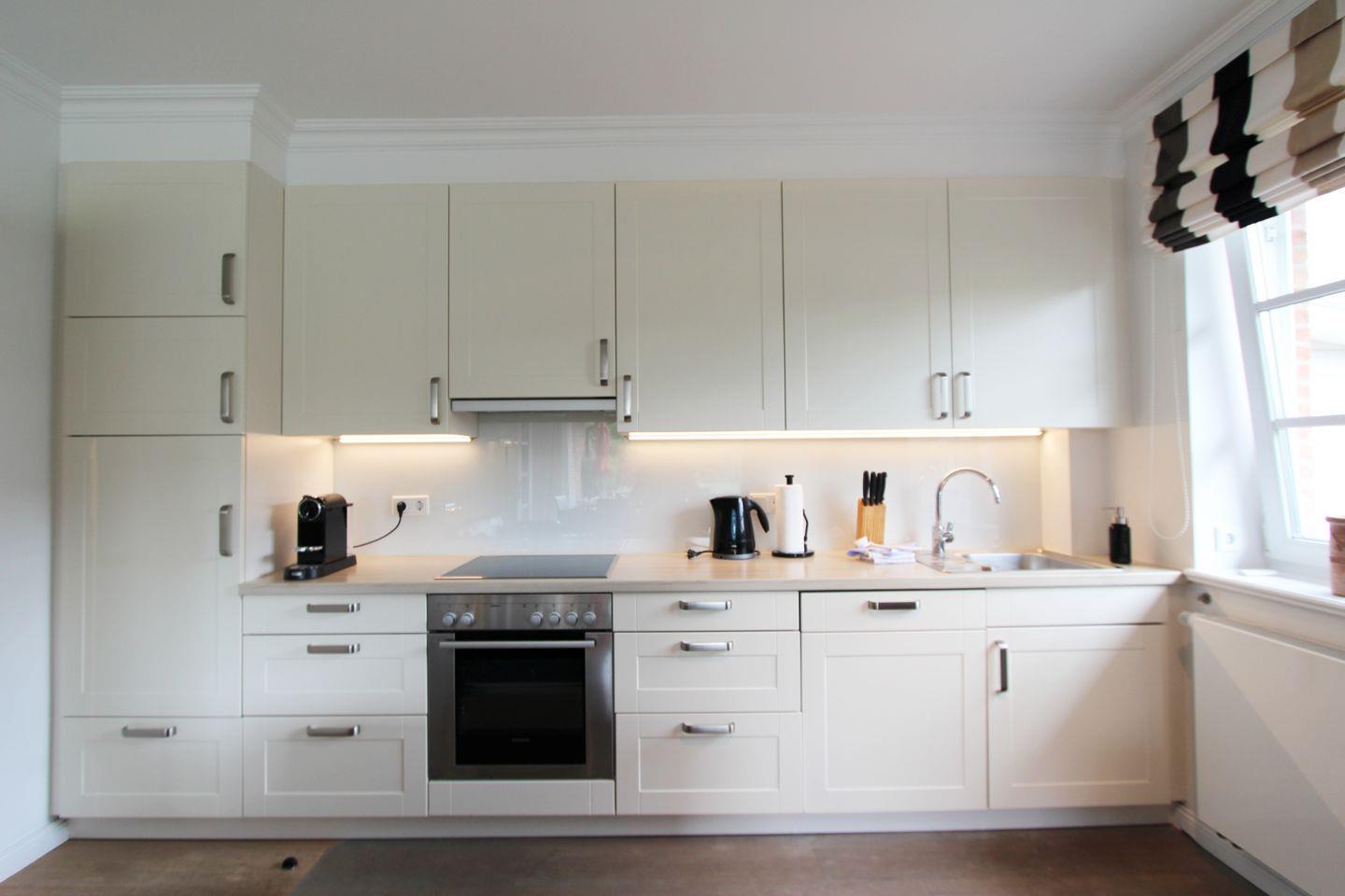 In der voll ausgestatteten Küchenzeile können Sie nach Herzenslust kochen. Der großzügige Essplatz mit Gartenblick im Wohnbereich lädt zu entspannten Mahlzeiten ein.