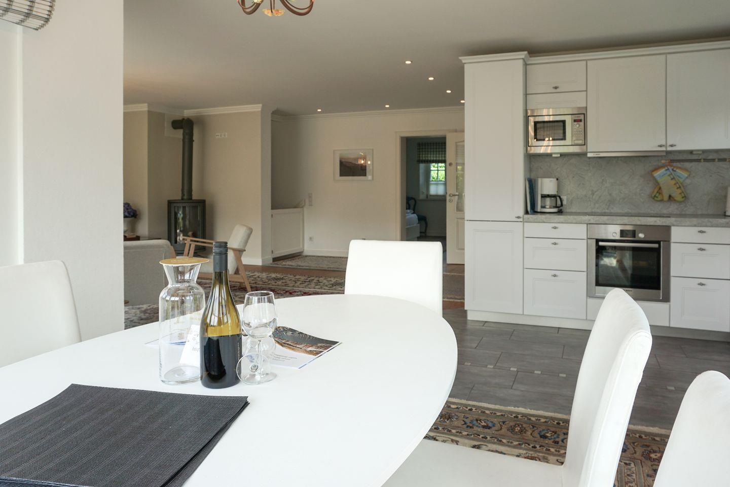 In der Wohnung angekommen erwartet Sie ein offener Wohn-Essbereich (45qm) mit integrierter voll ausgestatteter Küche mit direktem Zugang über den Wintergarten zur Terrasse mit Strandkorb und großem, windgeschützten Sitzbereich.