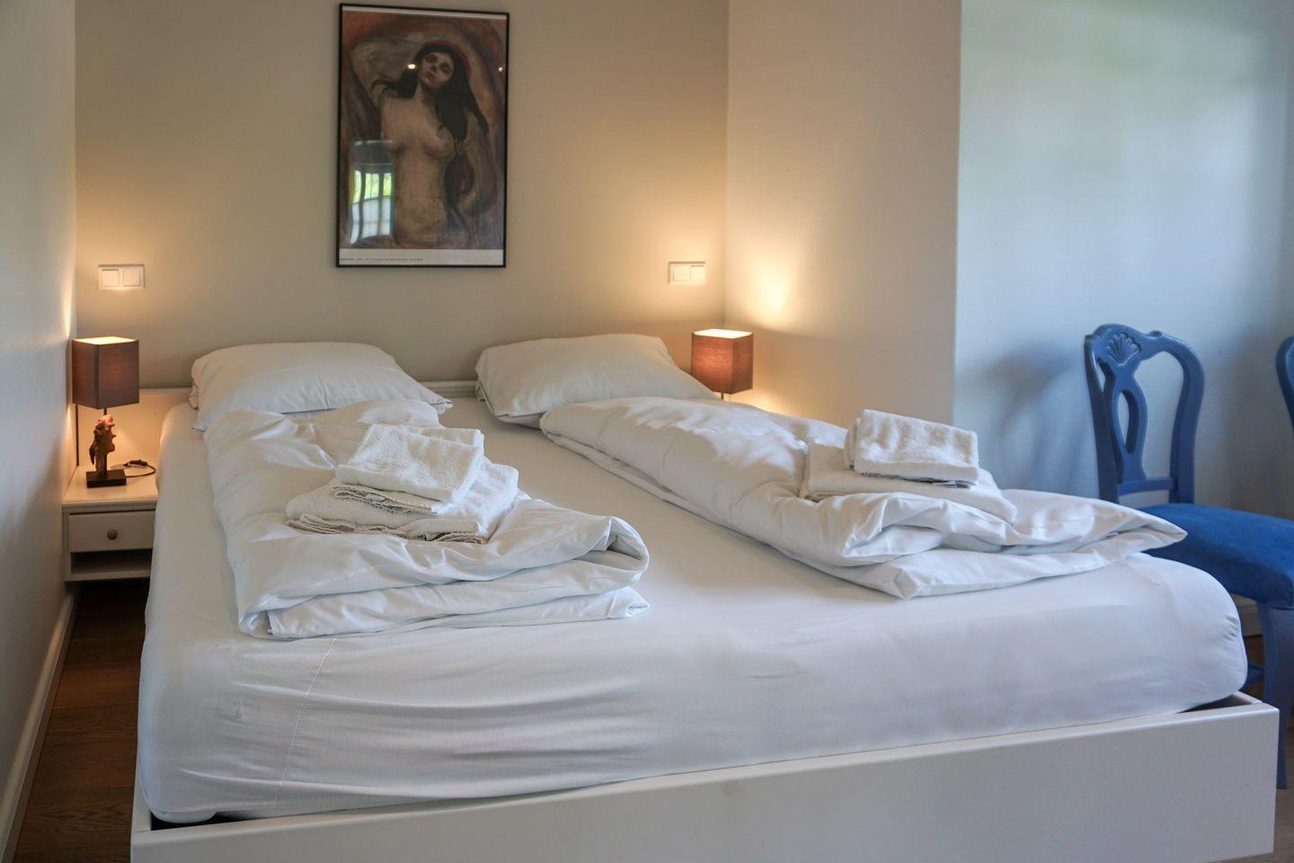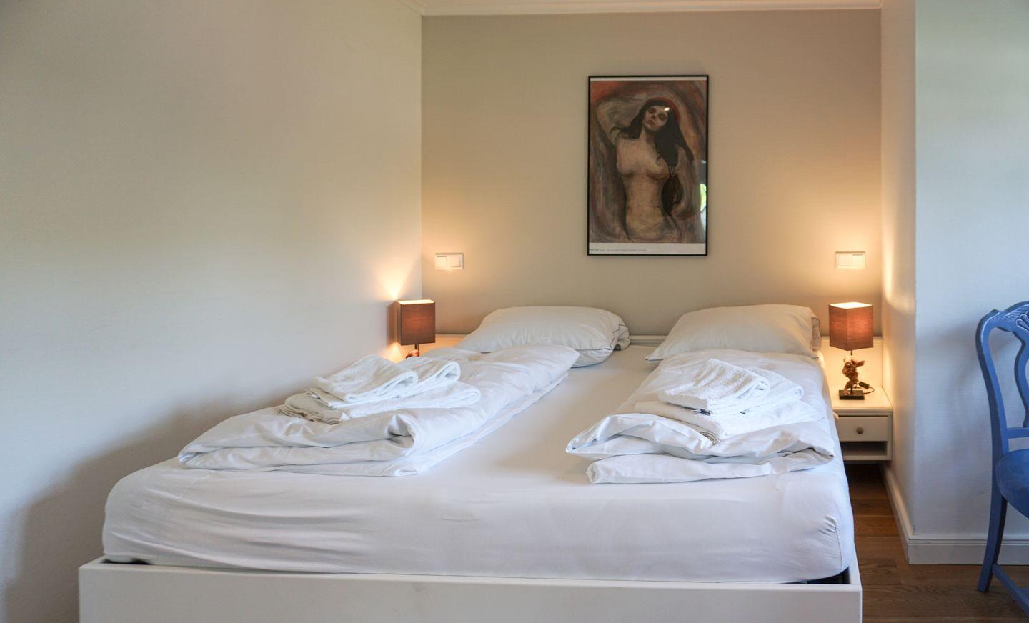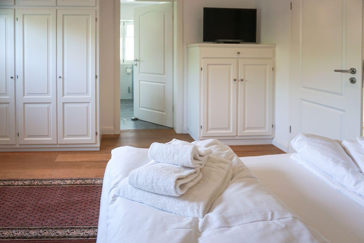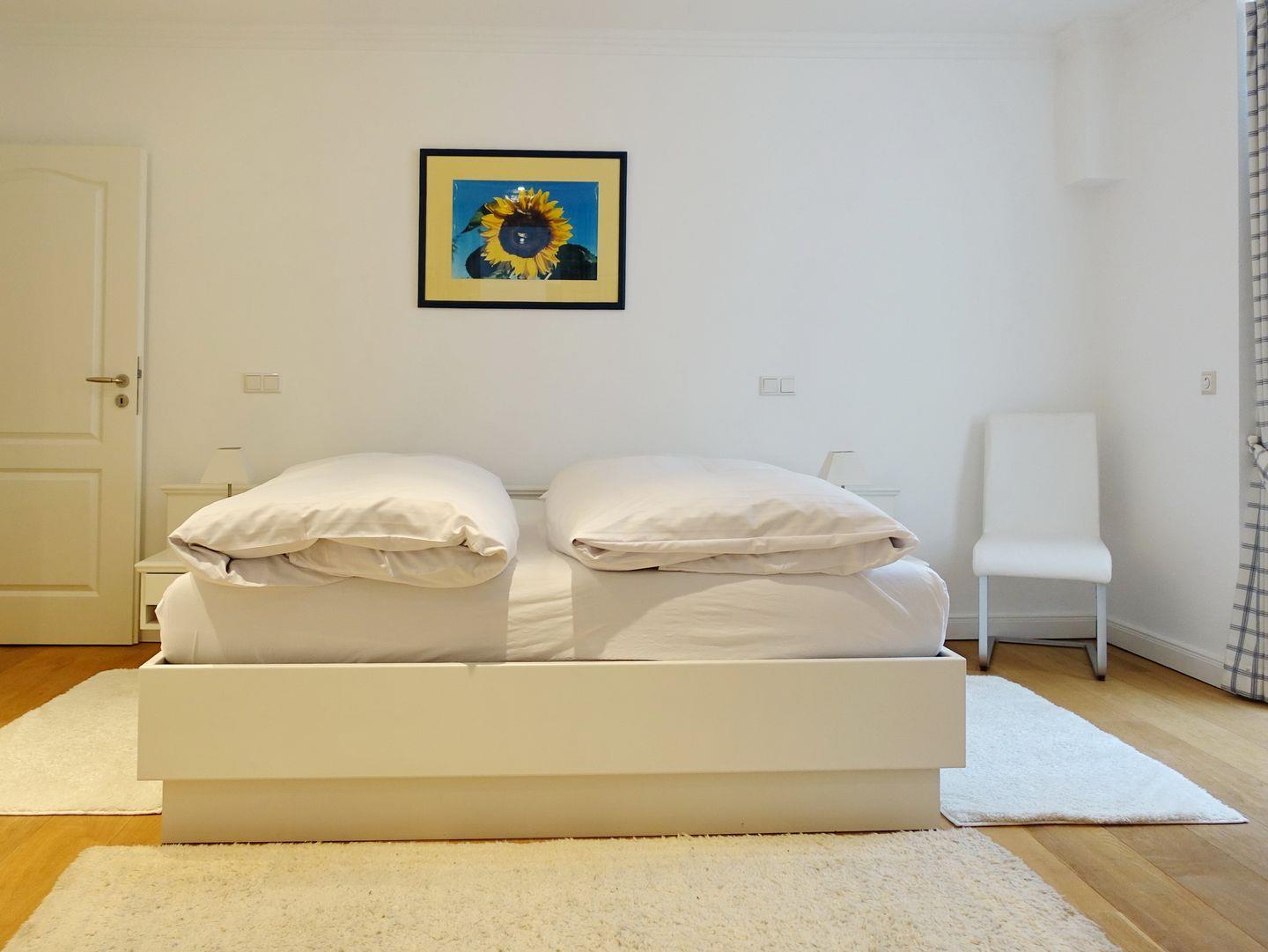 Im Untergeschoss glänzen die Räume durch hohe Decken und einem hellen, freundlichen Charme. Ein Schlafraum ist einem Doppelbett (180x200cm), sowie ein weiterer Raum mit Einzelbetten (90x200cm) ausgestattet. Mit einem Bad mit Whirlpool mit Dusche und separatem WC haben Sie viel Platz (insgesamt 170 qm). Hier findet sich für jeden die richtige Möglichkeit, sich zu erholen und zu entspannen.