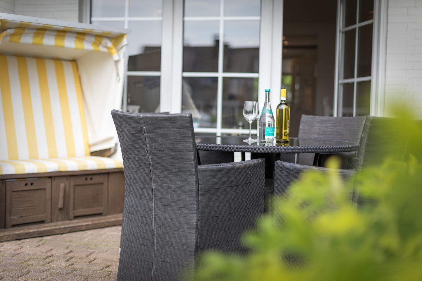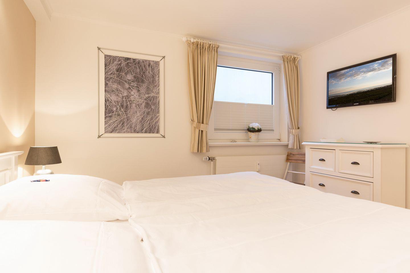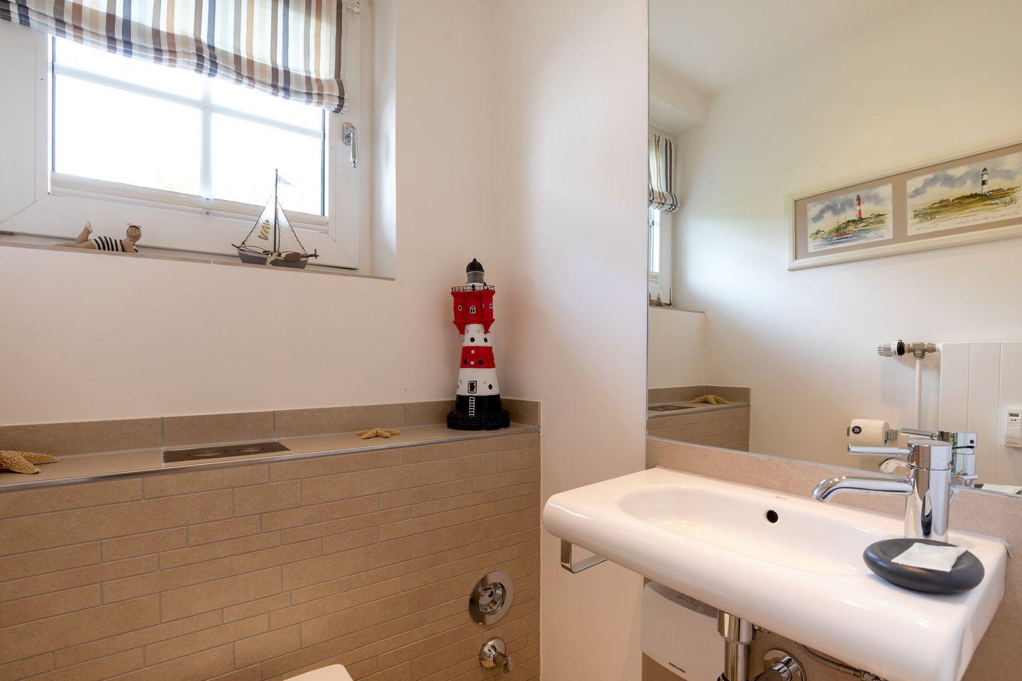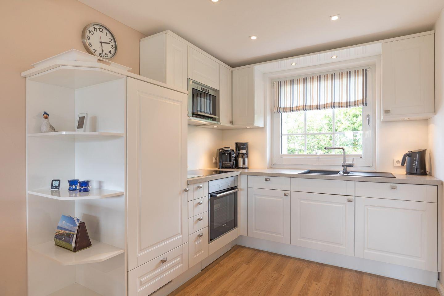EG: Sehr schön gestalteter, lichtdurchfluteter Wohnraum mit gemütlicher Sitz- und Essecke. Charmante Bilder an den Wänden schaffen Sylt- und Urlaubsfeeling pur. Samsung Flat-TV und Bluetooth fähiges Internet Radio. WLAN mit Flatrate. Integrierte, hochwertige Küchenzeile mit Geschirrspüler, Mikrowelle und Backofen. Schöne, sonnige Südterrasse mit Gartenmöbeln und Strandkorb (ca. April-Oktober). Im Entrée Ihres Urlaubsdomizils empfangen Sie ebenfalls noch ein Gäste-WC sowie eine von Tischlerhand gefertigte kleine Diele.
