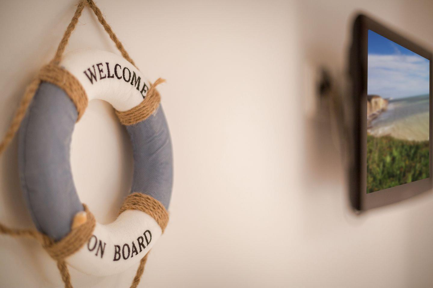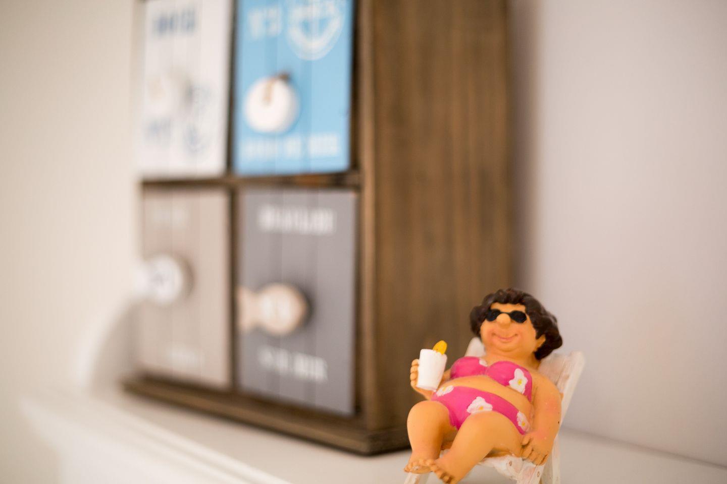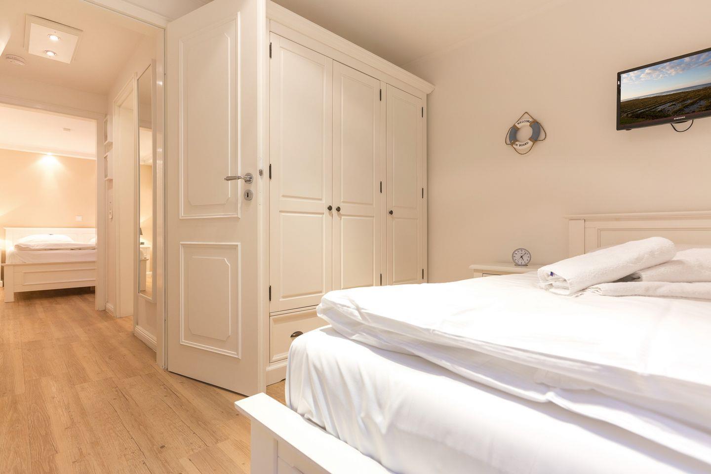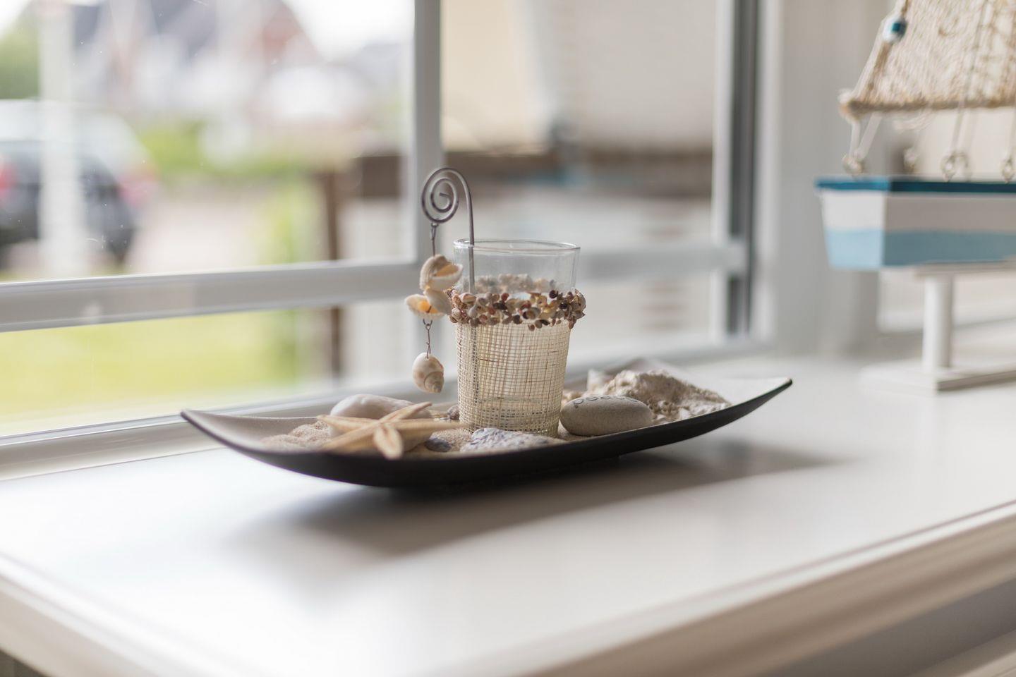 EG: Sehr schön gestalteter, lichtdurchfluteter Wohnraum mit gemütlicher Sitz- und Essecke. Charmante Bilder an den Wänden schaffen Sylt- und Urlaubsfeeling pur. Samsung Flat-TV und Bluetooth fähiges Internet Radio. WLAN mit Flatrate. Integrierte, hochwertige Küchenzeile mit Geschirrspüler, Mikrowelle und Backofen. Schöne, sonnige Südterrasse mit Gartenmöbeln und Strandkorb (ca. April-Oktober). Im Entrée Ihres Urlaubsdomizils empfangen Sie ebenfalls noch ein Gäste-WC sowie eine von Tischlerhand gefertigte kleine Diele.