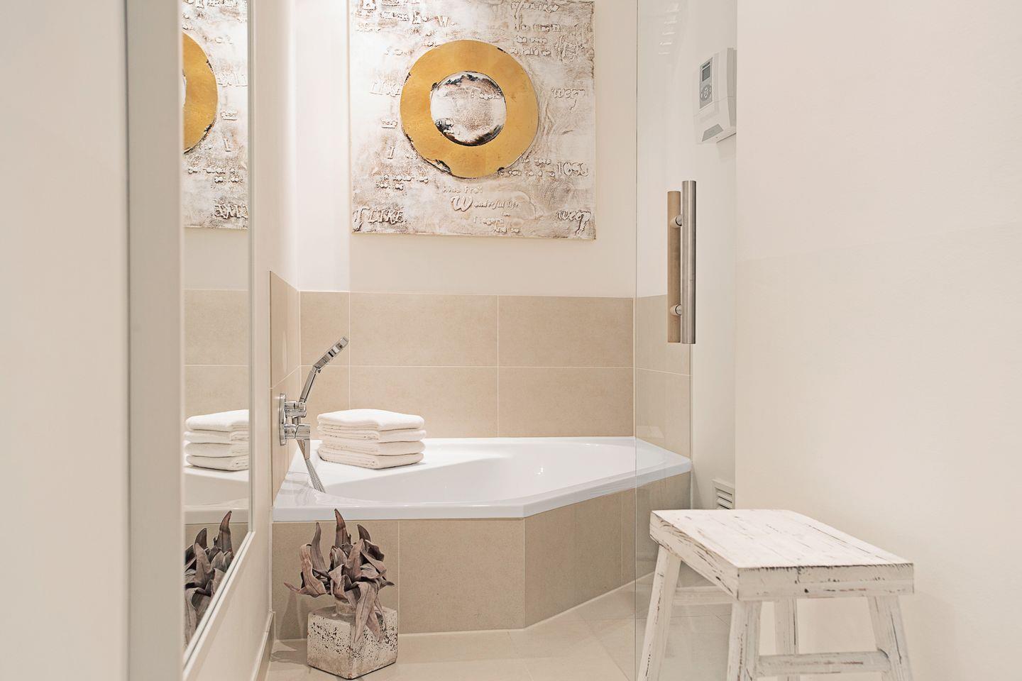 Im Souterrain des Hauses finden Sie zwei weitere Schlafzimmer mit jeweils einem Doppelbett und Flatscreen-TV. Außerdem verfügt dieses Geschoss über ein weiteres Badezimmer mit Eck-Badewanne, Dusche und WC sowie über eine Sauna, die zum Entspannen einlädt.