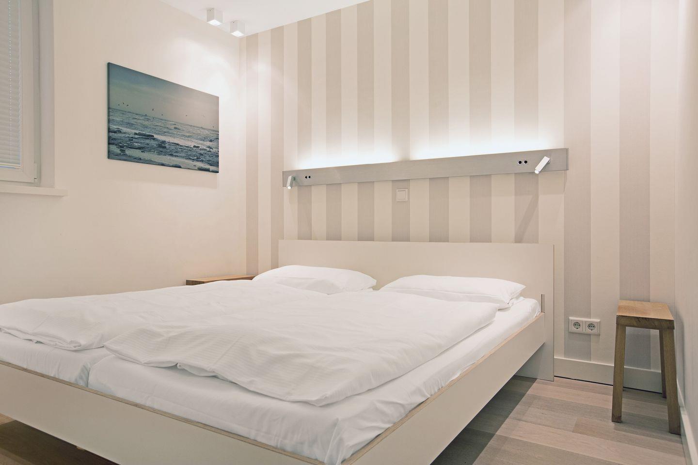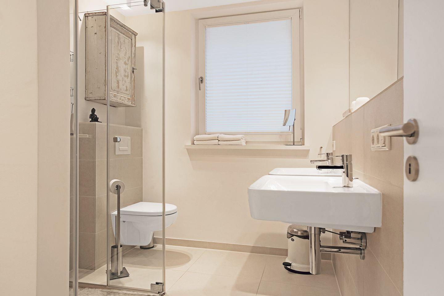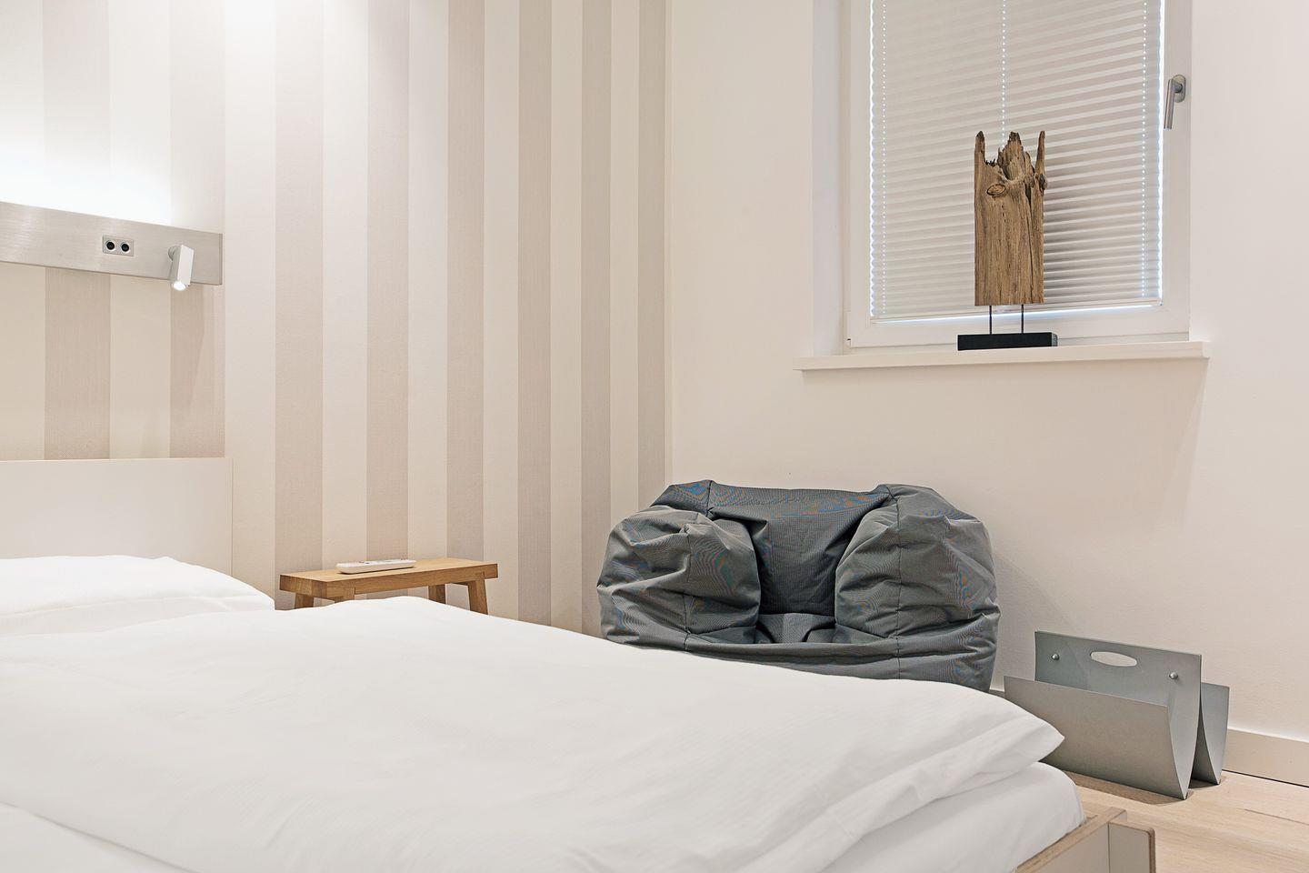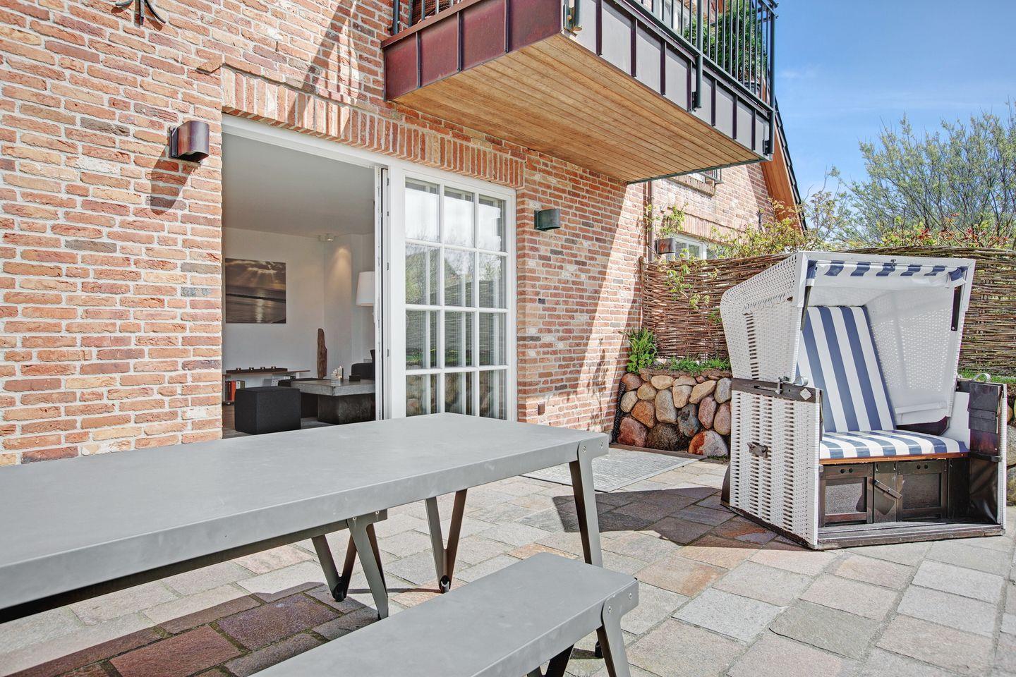 Auf der Terrasse können Sie im eigenen Strandkorb oder am zusätzlichen Esstisch Ihr Frühstück in der Sonne genießen. Im Erdgeschoss finden Sie außerdem ein Schlafzimmer mit Doppelbett und zustellbarem Kinderbett sowie ein Badezimmer mit Tageslicht. Hauseigener Parkplatz rechts vom Objekt.