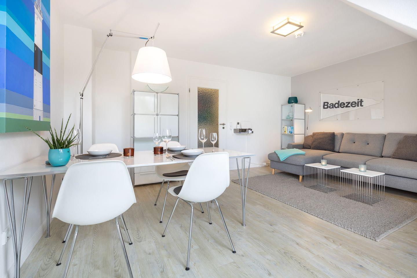 Verbringen Sie ruhige Tage in modernem, designorientiertem Ambiente: Das Appartement Badezeit bietet Jungen und Junggebliebenen hochwertige Einbauten, innovativ klar gestaltete Räume und komfortables Wohnen auf zwei Ebenen. Ein großzügiger Westbalkon lädt zum gemütlichen Frühstück ein. Erholung ist dank der ruhigen aber zentralen Lage garantiert. Tauchen Sie in Ihren Urlaub ein!