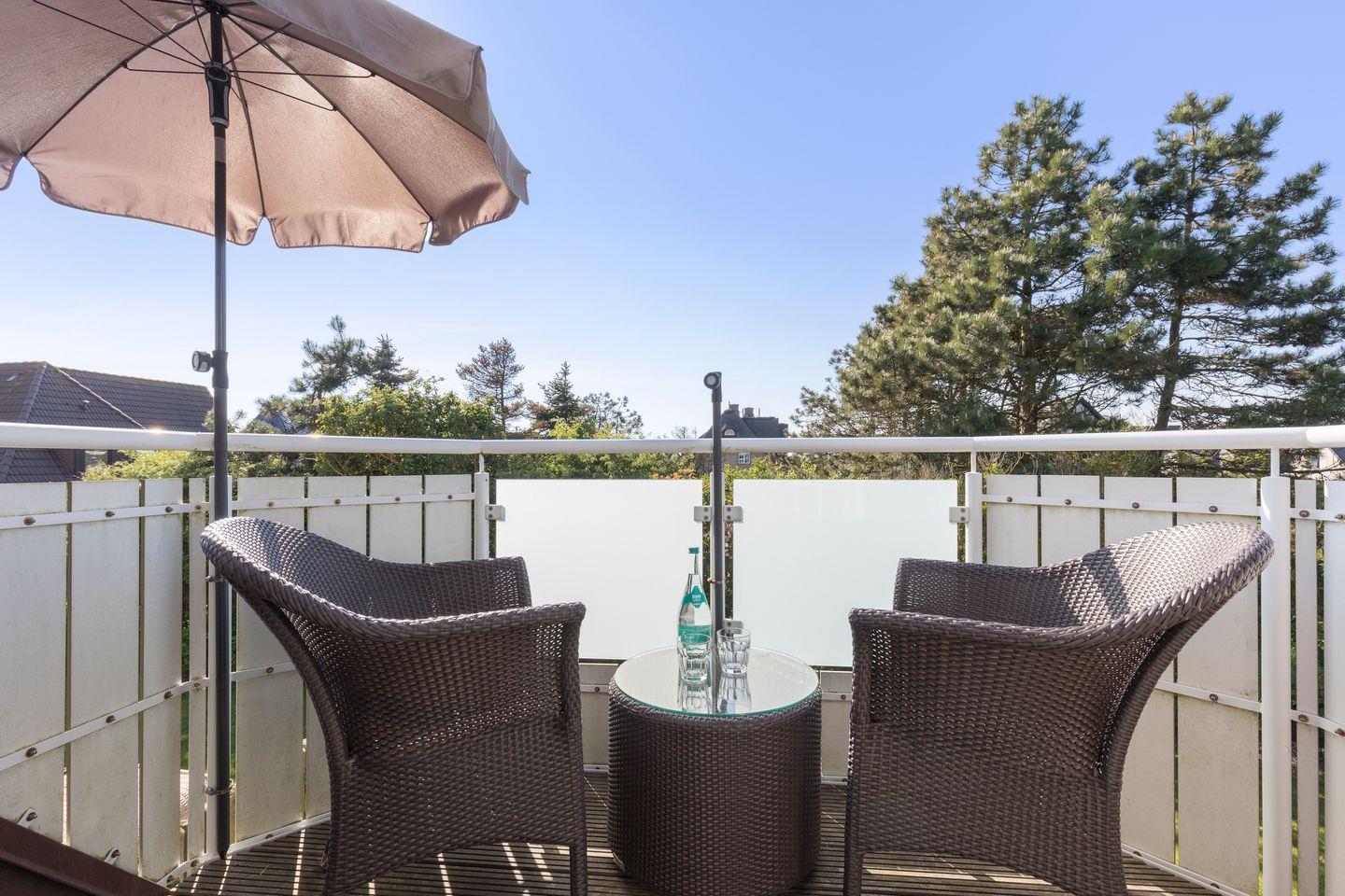 OG: Lichtdurchfluteter, großzügiger Wohnbereich, sehr geschmackvoll gestaltet. Flat-TV, DVD, iPod-Dock, WLAN und Radio. Integrierte Luxusküche mit Backofen, Microwelle und Geschirrspüler. Sehr schöner Westbalkon mit Blickrichtung Dünen, zum Genießen der Sylter Sonnenstunden mit Gartenmobiliar (ca. von April-Oktober). Großzügiges Wohlfühlbad mit XXL-Dusche, WC, schönem Waschtisch mit Gira-Unterputzradio sowie kombiniertem Miele-Waschtrockner. Schönes Schalfzimmer mit Doppelbett (ca 1,8x2m), Wand-Flat-TV und viel Schrankplatz, von versierter Tischlerhand eingebaut.