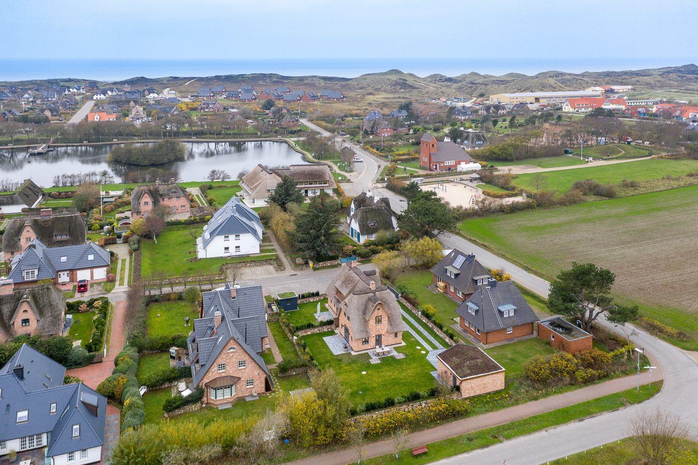 Modern und trotzdem urgemütlich zeigt sich dieses Reetdach-Hausteil in Wenningstedt. In unmittelbarer Nähe zur Idylle des Dorfteichs finden Sie diesen wunderbaren Rückzugsort, das Ferienhaus „Net Itüüs“.