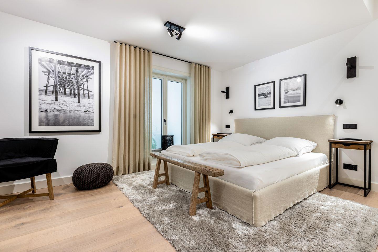 UG: zwei Räume mit Doppelbetten (180x200cm), Flatscreen-TV und jeweils angrenzendem Duschbad, in einem der Badezimmer befindet sich zusätzlich noch eine eigene Sauna