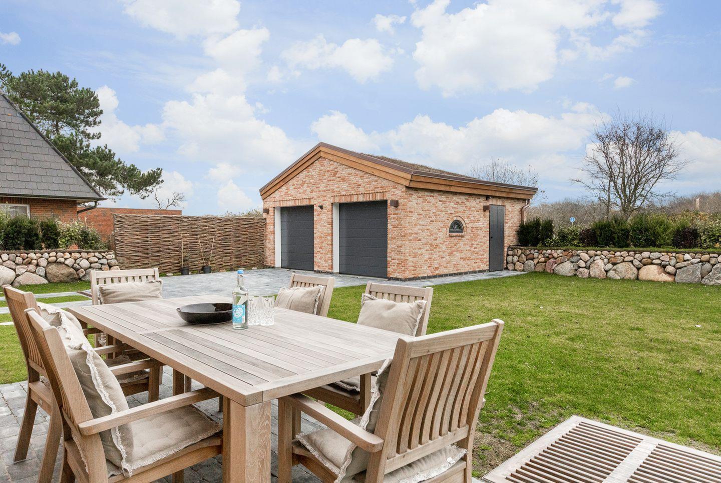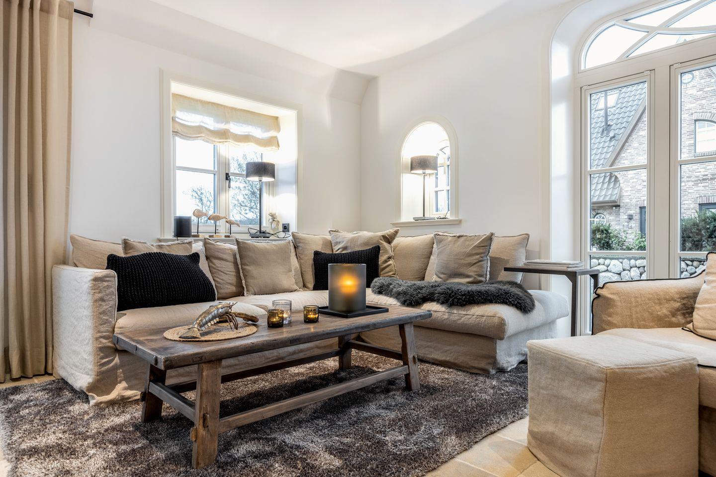 Mit besonders viel Liebe zum Detail wurde der Wohnraum des Hauses gestaltet. Entspannen Sie sich auf der großen Couch vor dem Kamin mit kuscheligem Teppich unter den Füßen oder schauen Sie Ihre Lieblingsserie auf dem Flatscreen-TV. Der Essbereich lädt mit einer eingebauten Sitzbank zum „länger sitzenbleiben“ ein und in der top-ausgestatteten, offenen Küche lässt sich wenn gewünscht problemlos ein ganzes Urlaubsmenü zaubern. Vom Wohnbereich aus betreten Sie Ihren privaten Garten mit möblierter Terrasse und einer Garage inklusive Wallbox für Elektroautos.