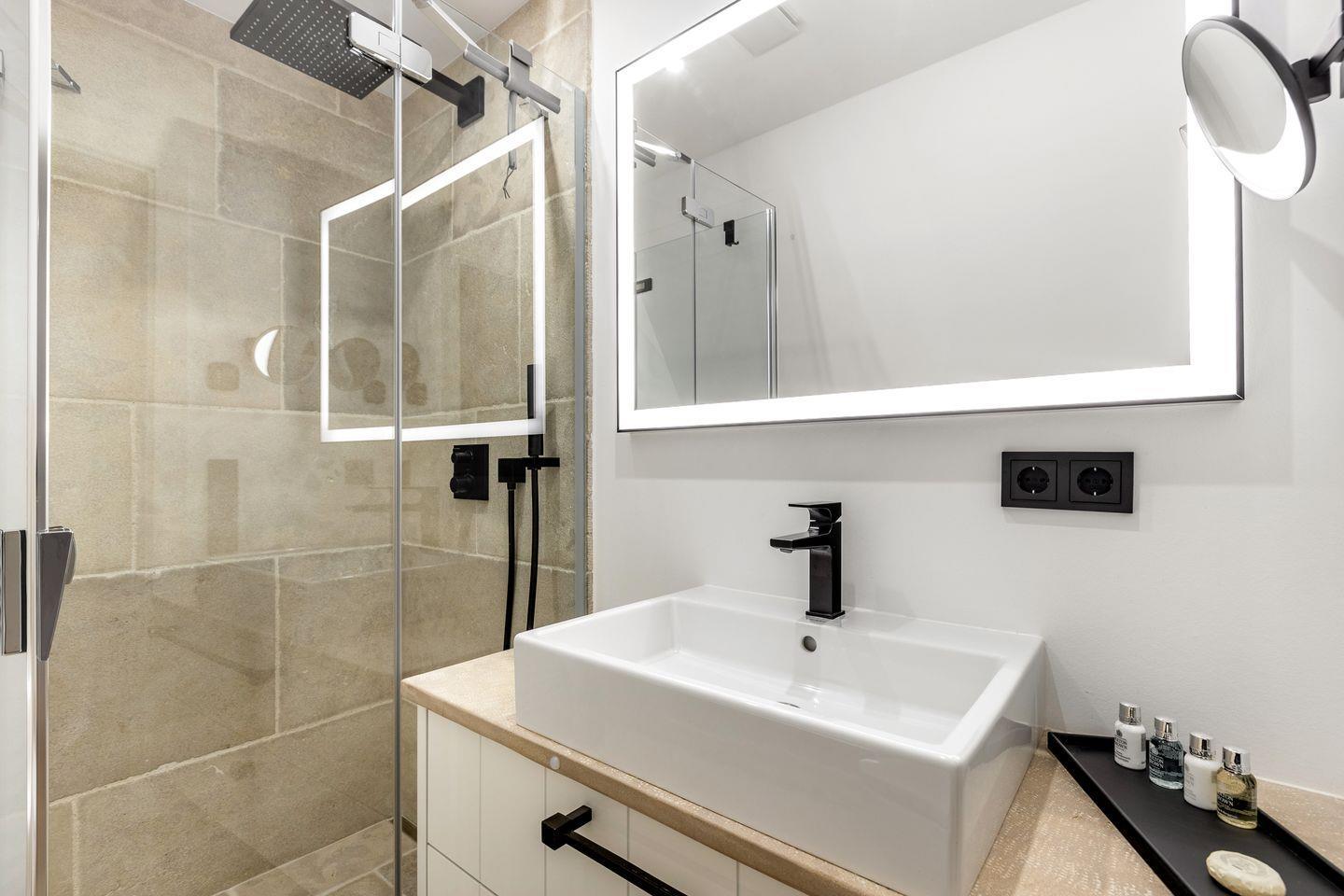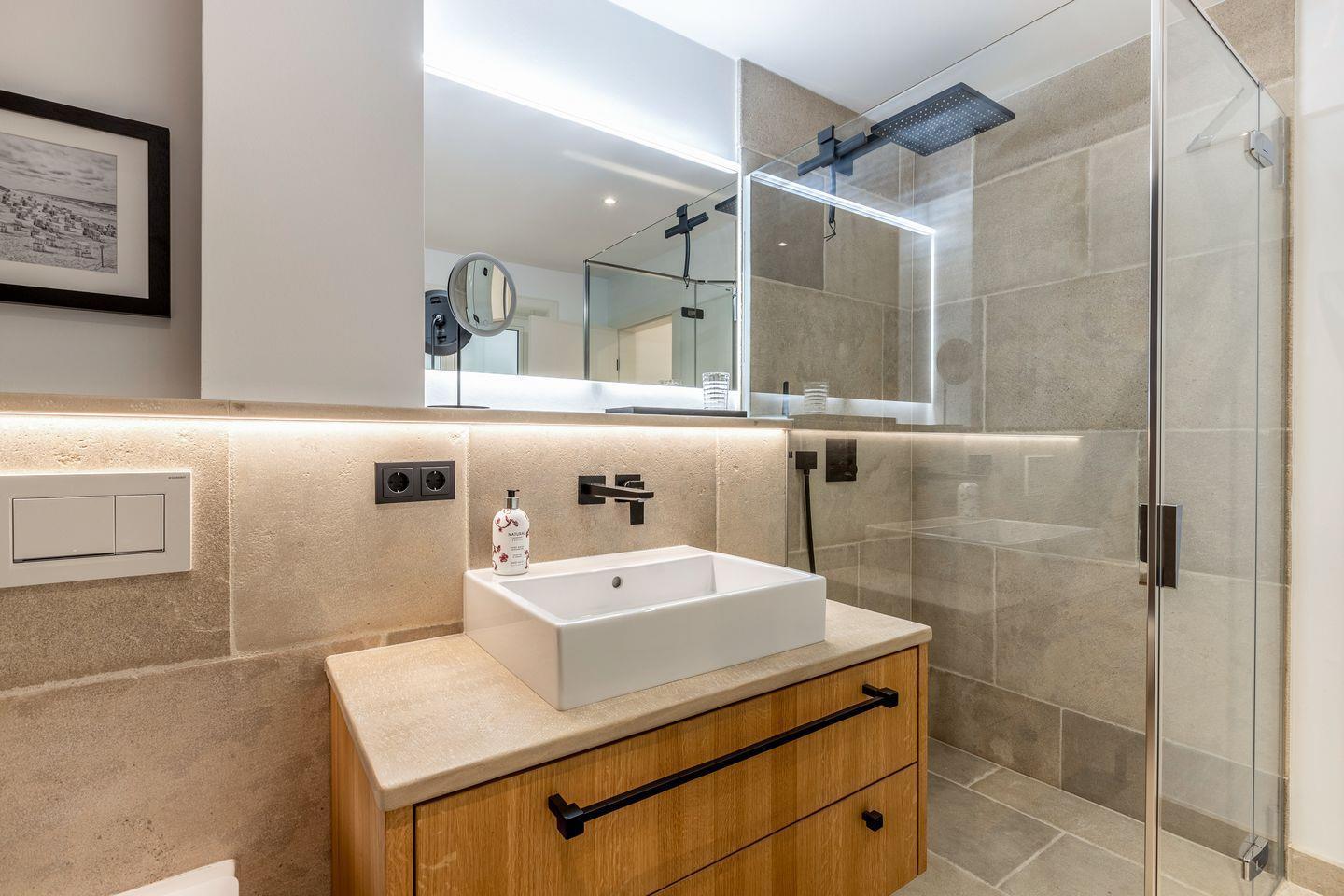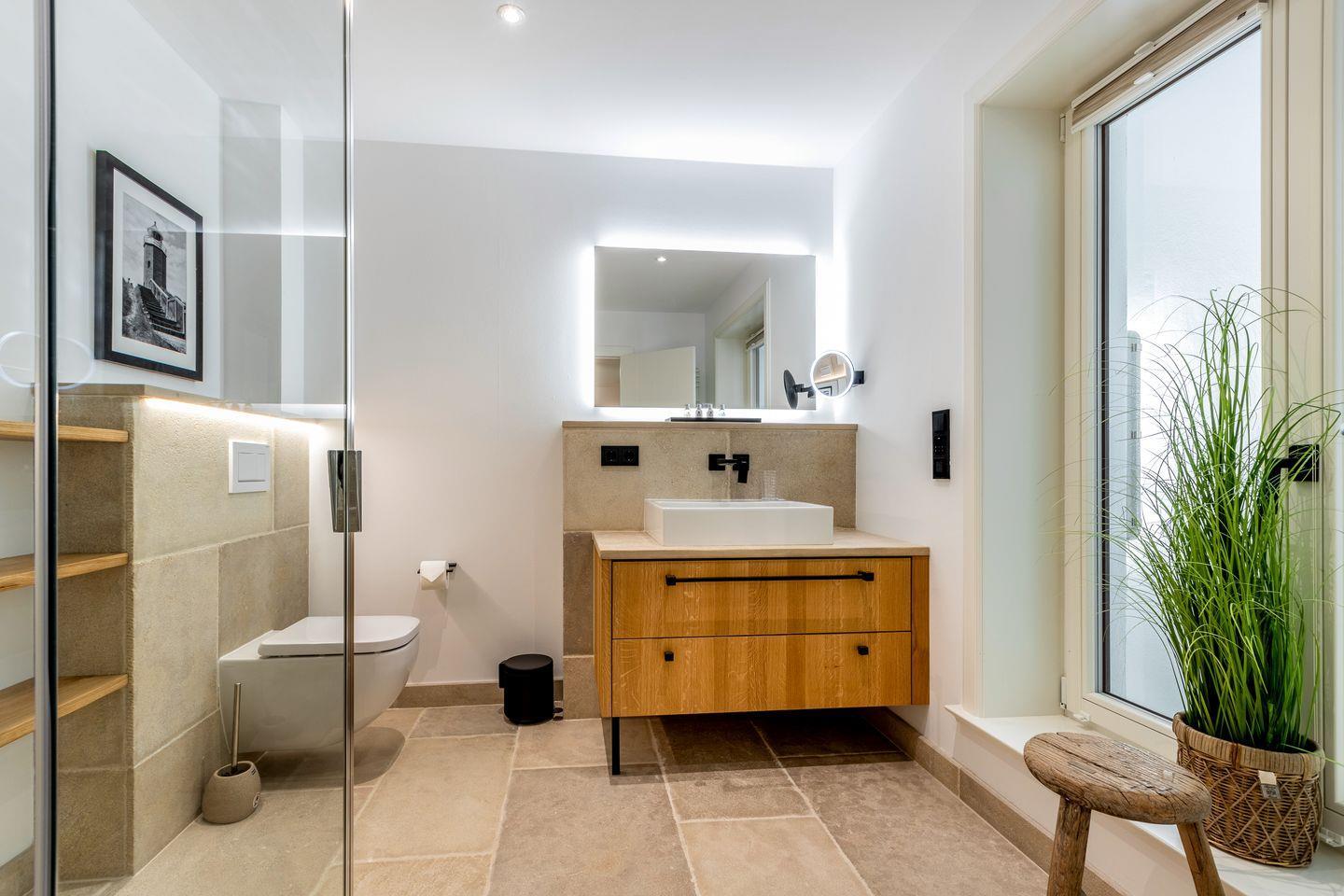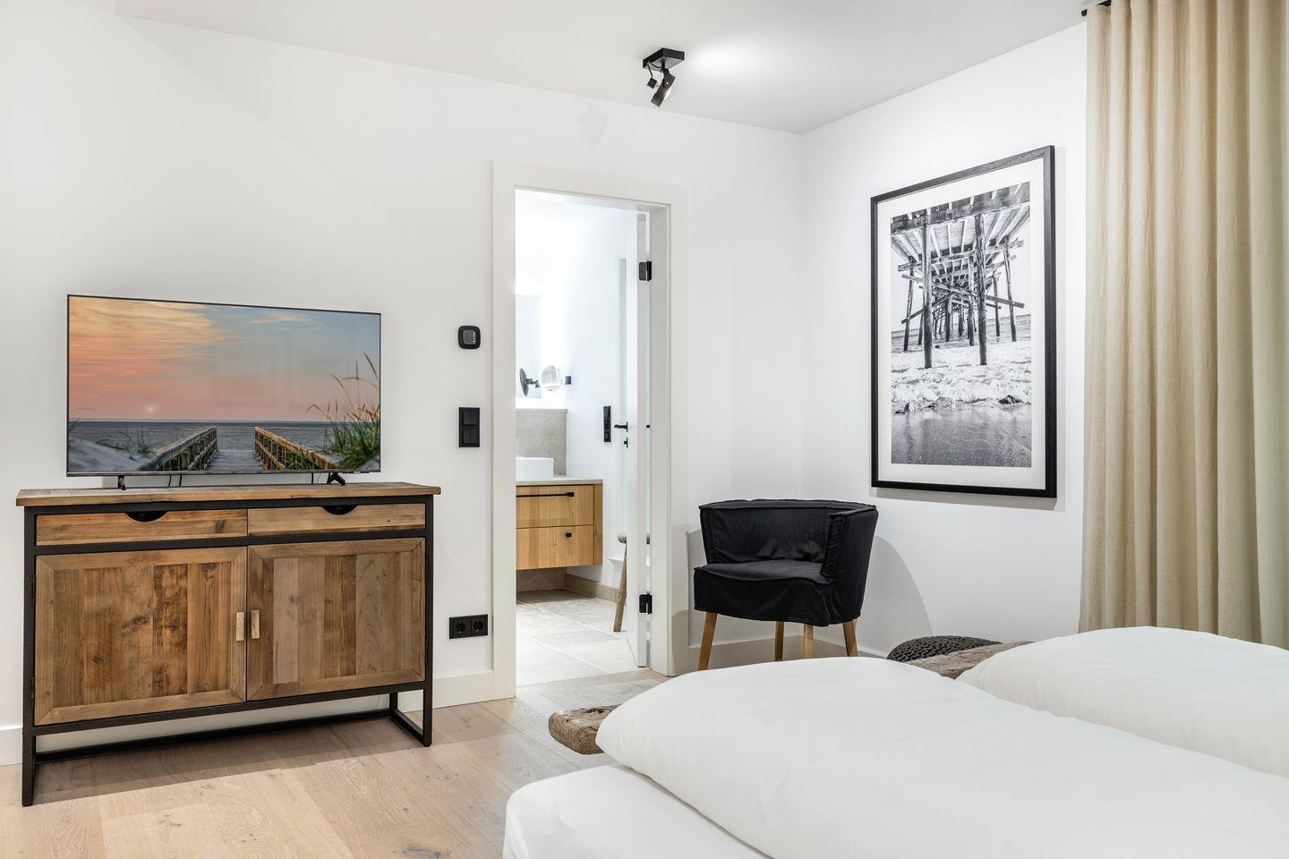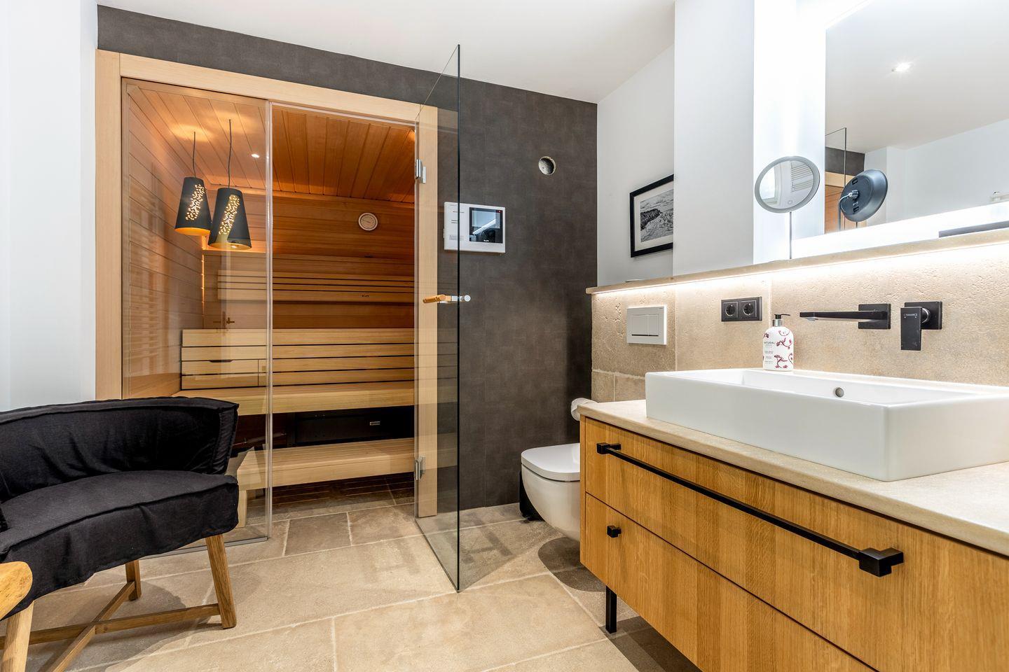 Im Untergeschoss des Hauses finden Sie zwei Räume mit jeweils einem Doppelbett und Flatscreen-TV und je einem angrenzendem Duschbad. Eines der Badezimmer bietet Ihnen zusätzlich eine kleine, private Sauna, in der Sie die kalten Tage so richtig genießen können.