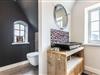 Im Obergeschoss des Hauses erwartet Sie ein großes Schlafzimmer mit viel Schrankplatz und Flatscreen-TV. Das Tageslichtbadezimmer mit XXL-Dusche und WC befindet sich direkt nebenan. Dieses besticht durch ein ganz besonderes Design mit ausgefallenen Möbeln und einzigartigen Fliesen.