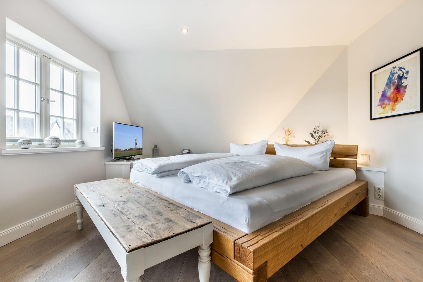 OG: Schlafzimmer mit Doppelbett (180x200cm- Matratze getrennt) und Flatscreen-TV, Bad mit XXL-Dusche und WC