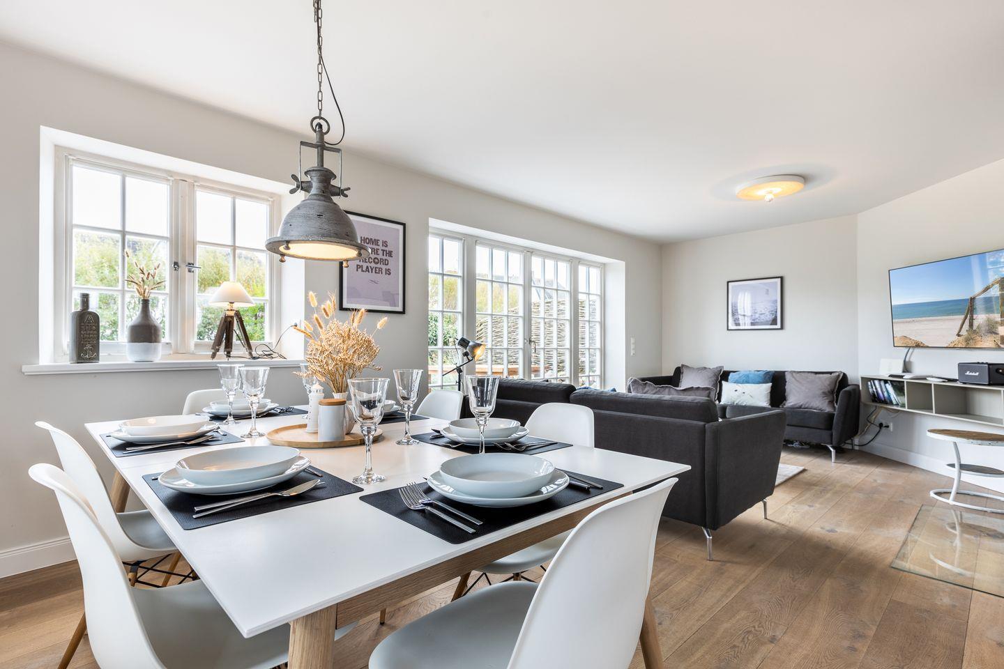 Im Ferienhaus „Tom Kyle“ wohnen Sie hinter den Dünen und der Strandaufgang befindet sich direkt vor Ihrer Tür - Meeresrauschen natürlich jederzeit inklusive. Das Domizil verwöhnt Sie mit einem fantastischen Grundstück - optimal sonnig zum Süden ausgerichtet mit großer Holzterrasse, loungigem Outdoormobiliar und sogar einer angelegten Dünenlandschaft.