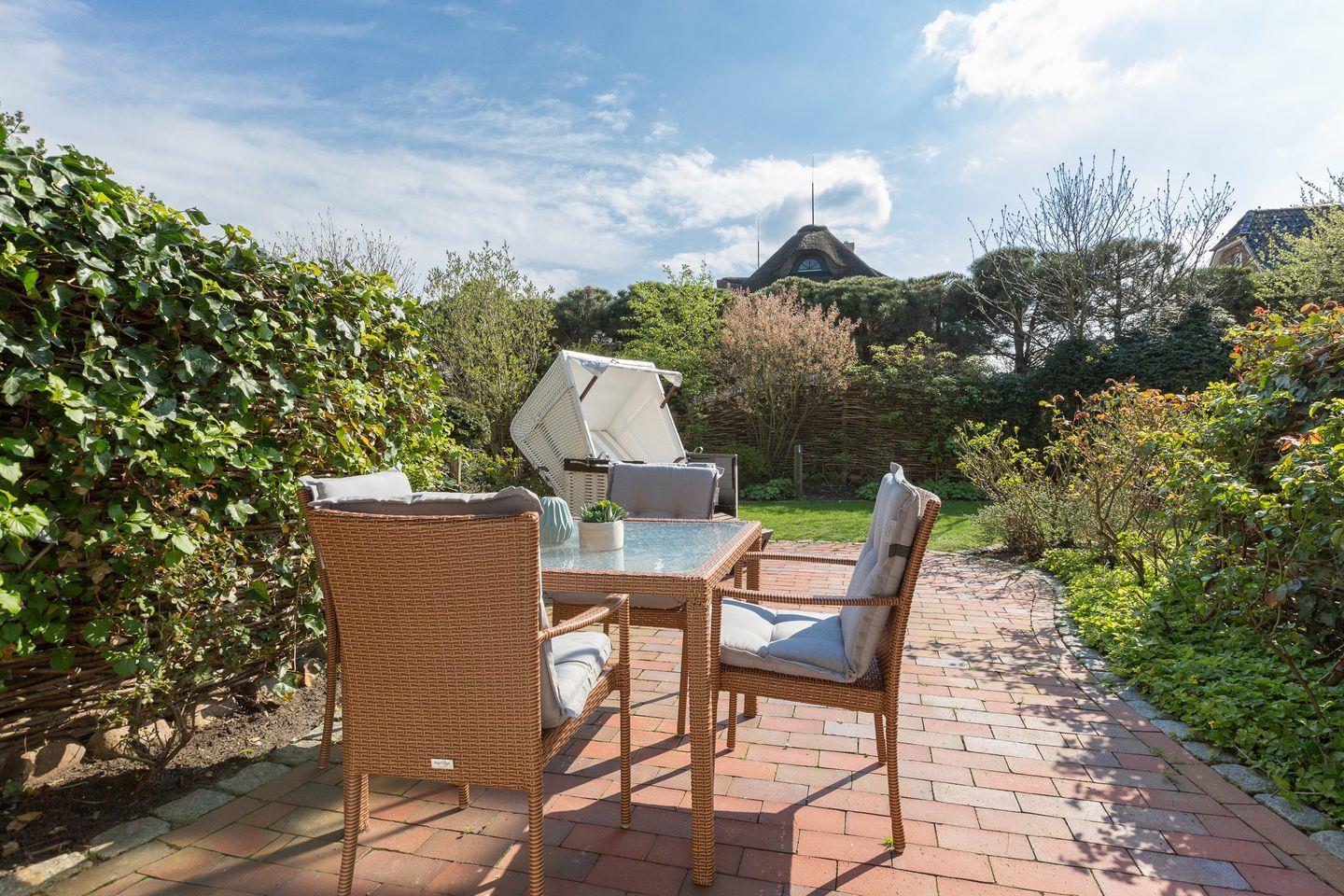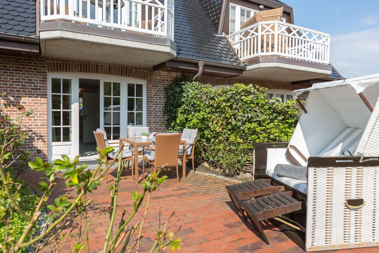 Das Beste kommt zum Schluss: Freuen Sie sich auf eine traumhafte und großzügige Süd-West-Terrasse mit Blick ins Grüne. Gemütliche Gartenmöbel und ein Strandkorb (ca. von April - Oktober) bieten genügend Platz um Sonne und frische Luft zu genießen.
