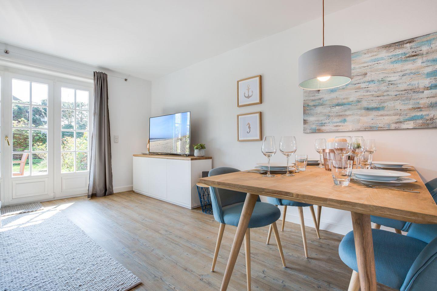 Willkommen im Nordic Hüs, Ihrer perfekten Ferienwohnung auf Sylt! Diese moderne Unterkunft bietet Platz für bis zu vier Personen und ist ideal für Familien oder Paare. Genießen Sie die offene Küche, eine gemütliche Sofaecke und eine sonnige Terrasse mit Gartenmöbeln. Entspannen Sie in einem der zwei Schlafzimmer oder nutzen Sie die erstklassige Ausstattung wie WLAN, mehrere Fernseher und eine voll ausgestattete Küche. Buchen Sie jetzt Ihr Traumdomizil!