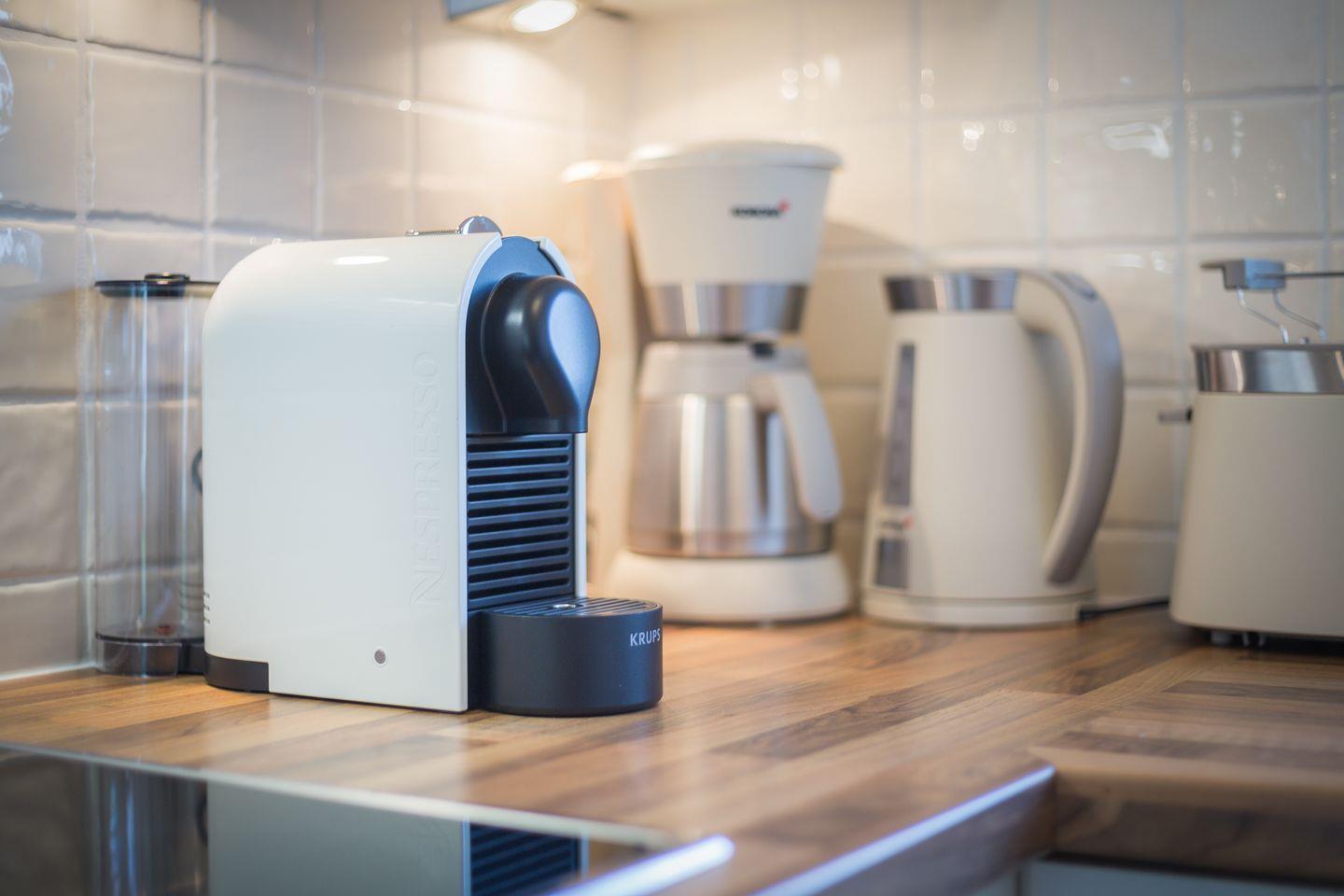 Die hochwertige Markenküche bietet alles, was das kulinarische Herz begehrt: Geschirrspüler, Backofen, Mikrowelle, Nespressomaschine mit Milchaufschäumer. Und vor allem – wie in der gesamten Wohnung - viel Stauraum für Ihre persönlichen Gegenstände.