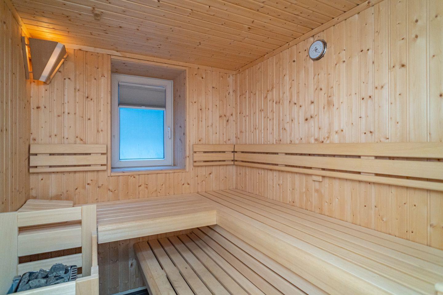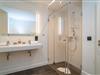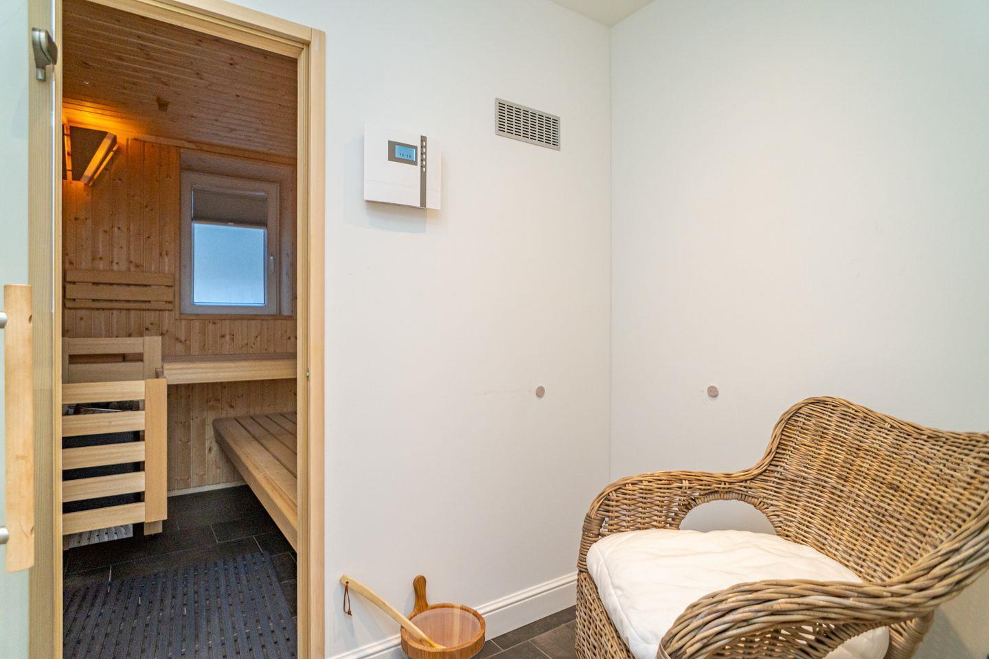 Insgesamt drei Schlafzimmer laden mit komfortablen Boxspringbetten zum wohligen Schlummern ein: eins im Erdgeschoss und zwei im Souterrain, von denen eins über einen begehbaren Kleiderschrank verfügt. Zwei moderne Bäder mit bodengleicher Dusche und on-top noch einer Sauna runden das Appartement Meeresleuchten ab.