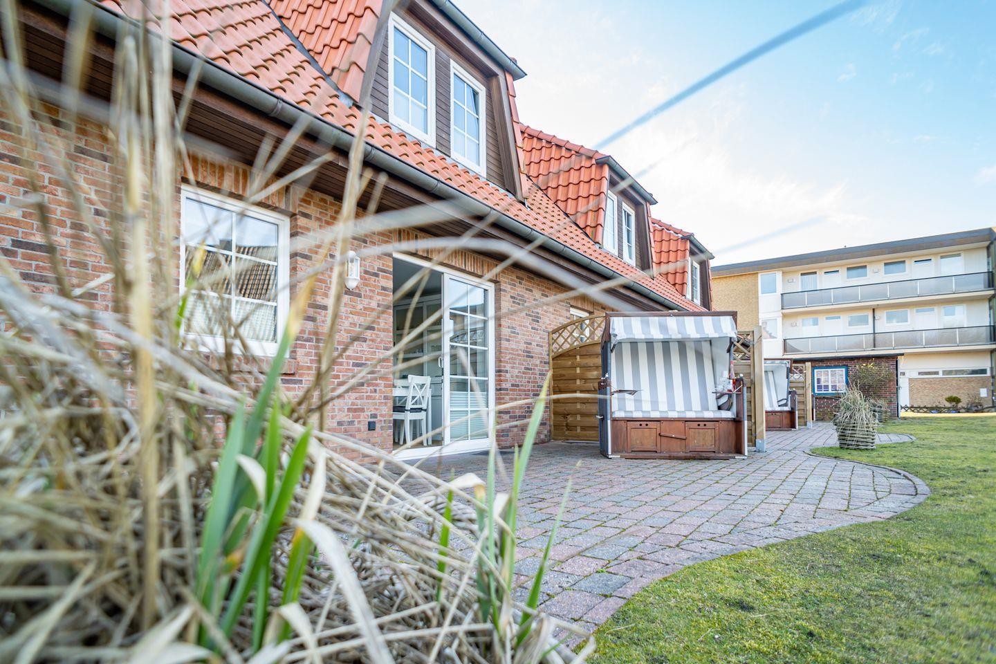 Ein weiteres Highlight ist die geschützte Terrasse, die zum Frischluft-Frühstück im Strandkorb, zum Faulenzen oder zum abendlichen Wein lockt.