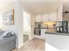 Die gekreideten Töne der Eichendielen ziehen sich durch alle Räumen und sorgen so für eine warme Atmosphäre. Helle Holzarbeiten und stilsichere Farbgestaltung verschaffen dabei eine behagliche Gemütlichkeit, die den nordischen Charakter dieses Appartements im Sylter Strandhaus Look prägt.