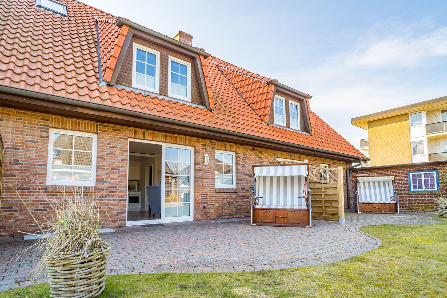 Ein weiteres Highlight ist die geschützte Terrasse, die zum Frischluft-Frühstück im Strandkorb, zum Faulenzen oder zum abendlichen Wein lockt.