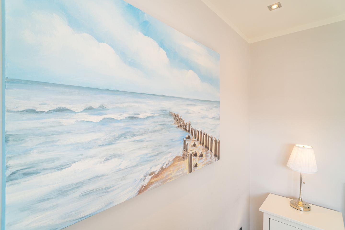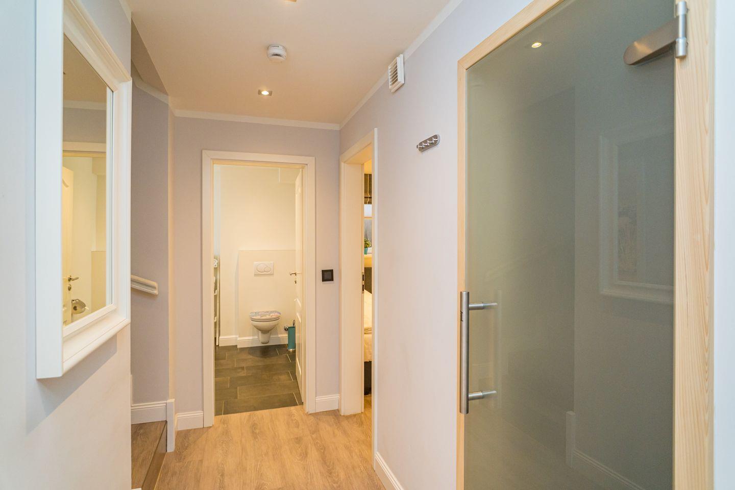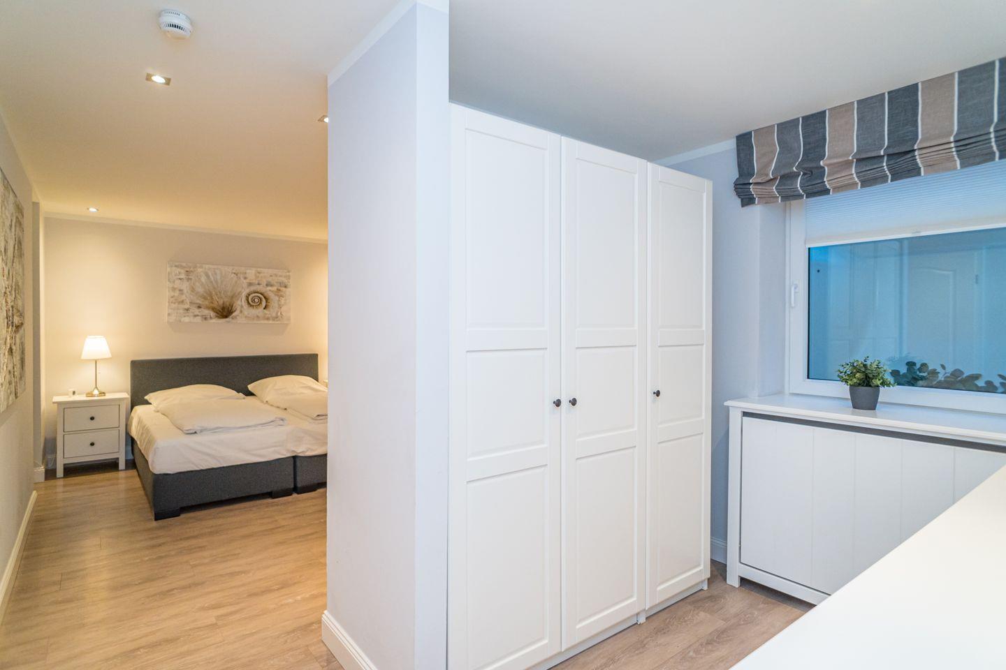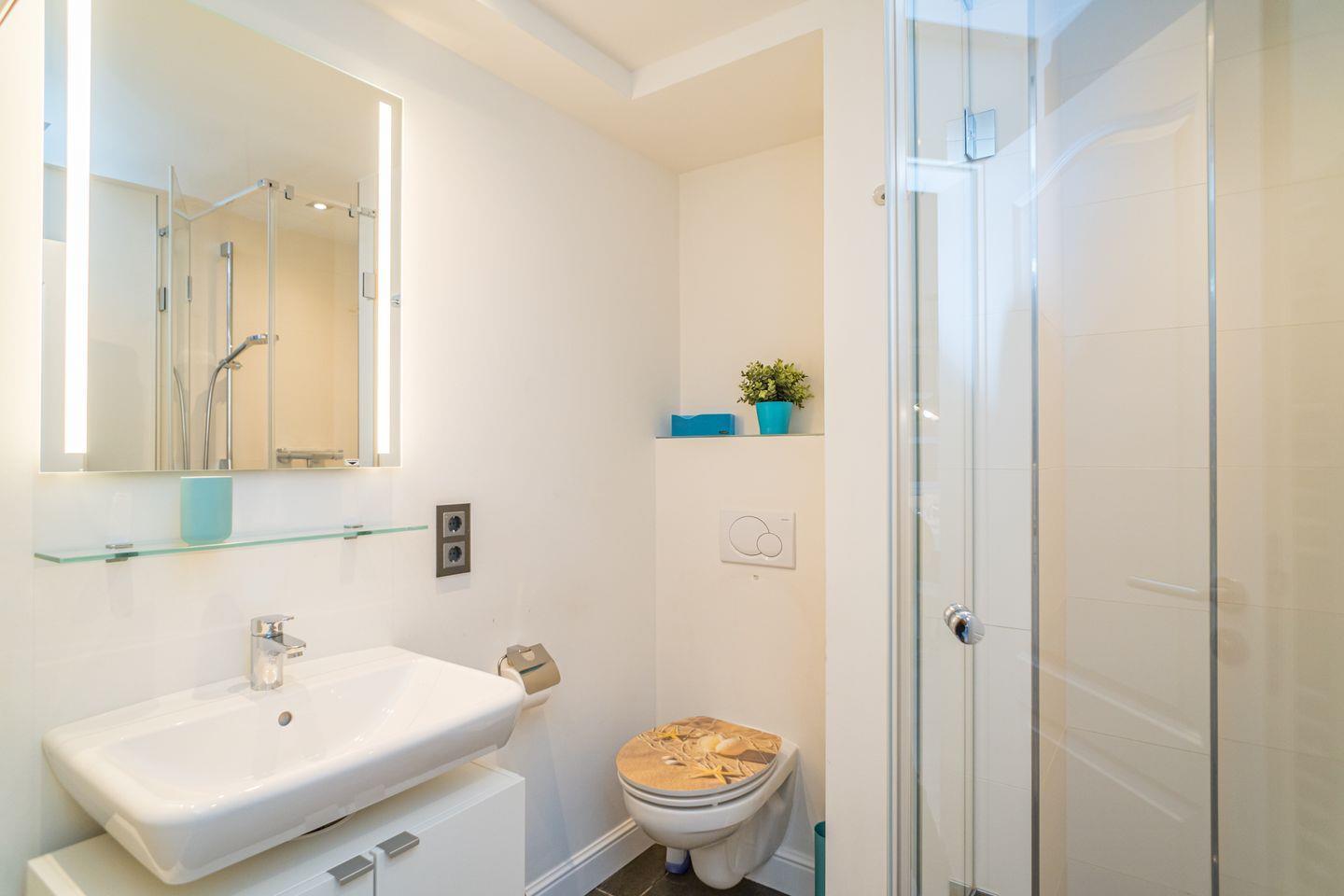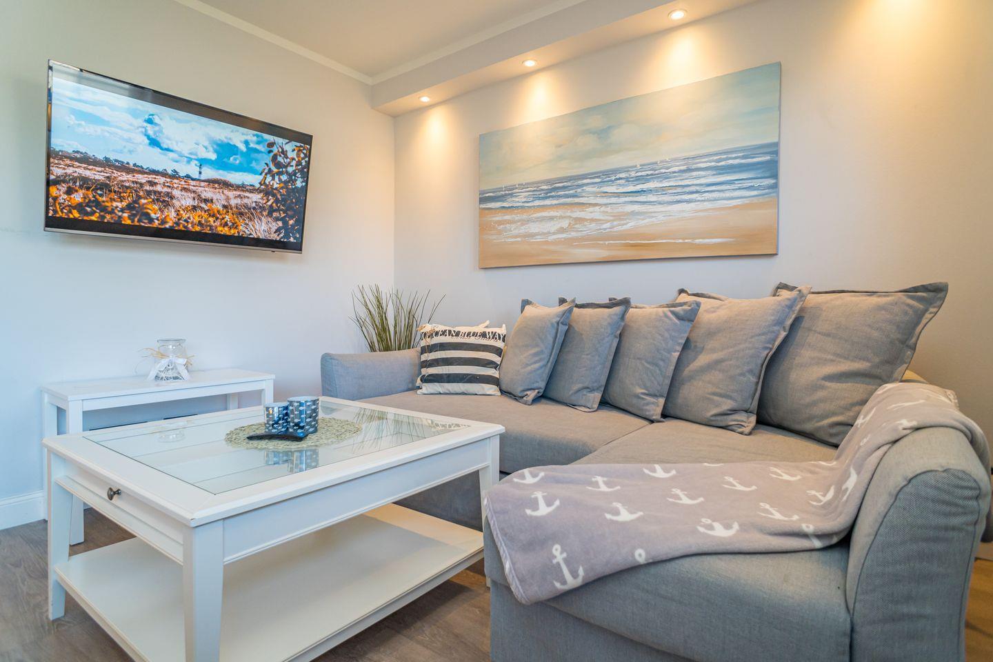 Insgesamt drei Schlafzimmer laden mit komfortablen Boxspringbetten zum wohligen Schlummern ein: eins im Erdgeschoss (Doppelbett) und zwei im Souterrain (begehbarer Kleiderschrank, Doppel- und Einzelbett). Zwei moderne Bäder mit bodengleicher Dusche und on-top noch einer Sauna runden das Appartement Lachmöwe ab.