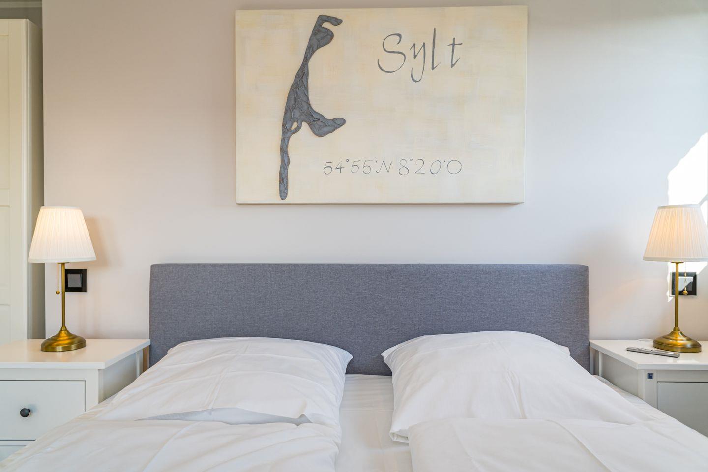 Die gekreideten Töne der Eichendielen ziehen sich durch alle Räumen und sorgen so für eine warme Atmosphäre. Helle Holzarbeiten und stilsichere Farbgestaltung verschaffen dabei eine behagliche Gemütlichkeit, die den nordischen Charakter dieses Appartements im Sylter Strandhaus Look prägt.