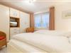 Im Untergeschoss der Ferienwohnung erwartet Sie ein Badezimmer mit Dusche und WC sowie ein weiterer Raum mit Doppelbett, Flatscreen-TV und viel Schrankplatz.