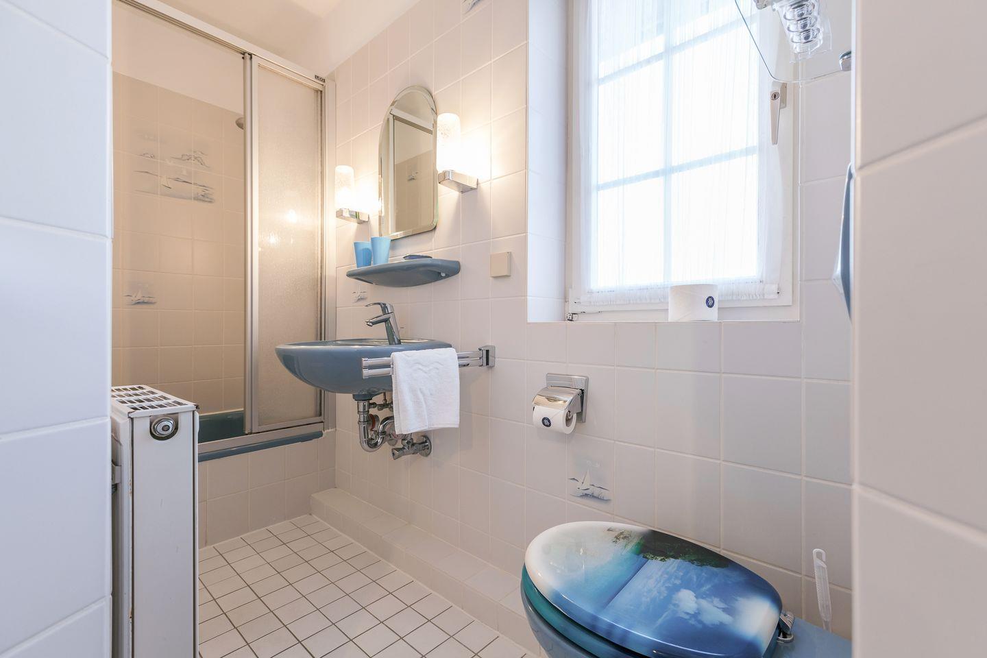 Vom Wohnbereich aus erreichen Sie die wunderschöne, großzügige Terrasse mit Gartenzugang, in dem sich die großen und kleinen Sylt-Liebhaber wohl fühlen werden. Im Erdgeschoss der Wohnung finden Sie außerdem ein Badezimmer mit Dusche und WC.