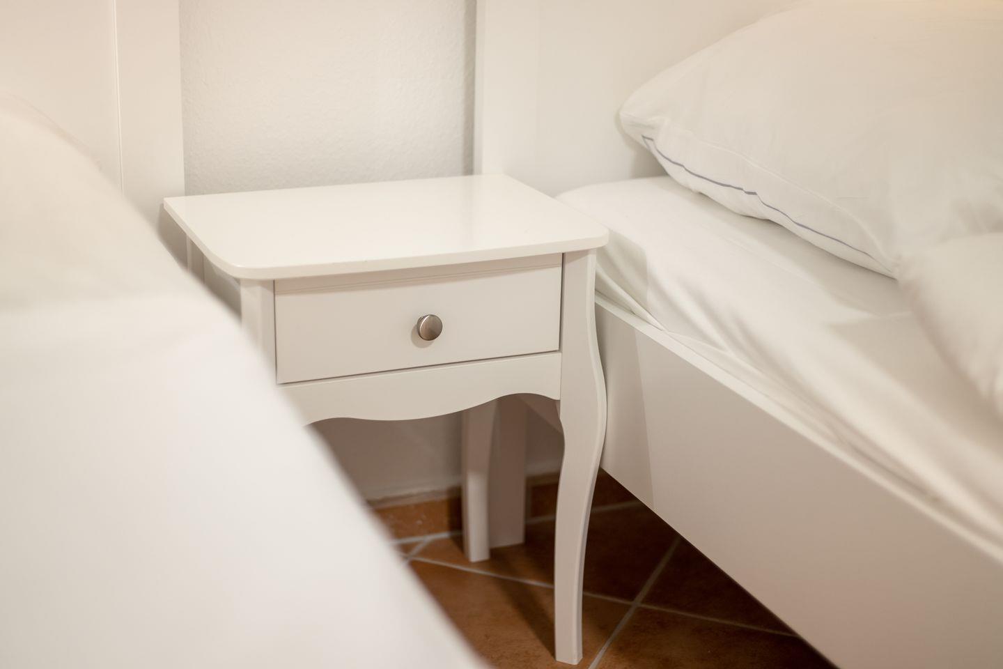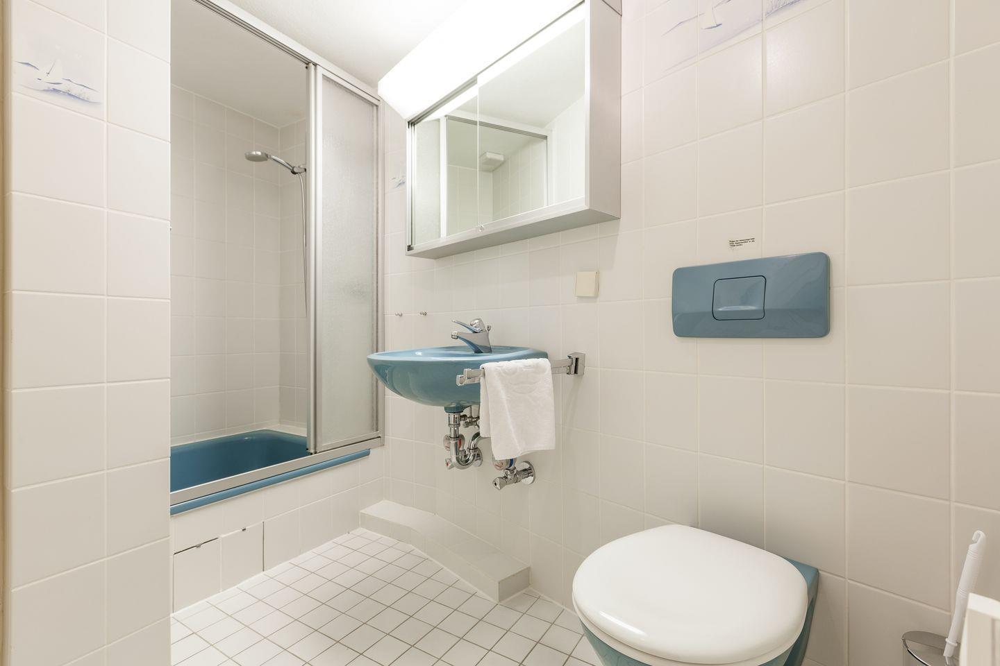 Das Untergeschoss der Wohnung verfügt über ein weiteres Badezimmer mit Dusche und WC. Außerdem befinden sich hier ein Raum mit Doppelbett und ein weiterer Raum mit zwei Einzelbetten.