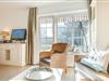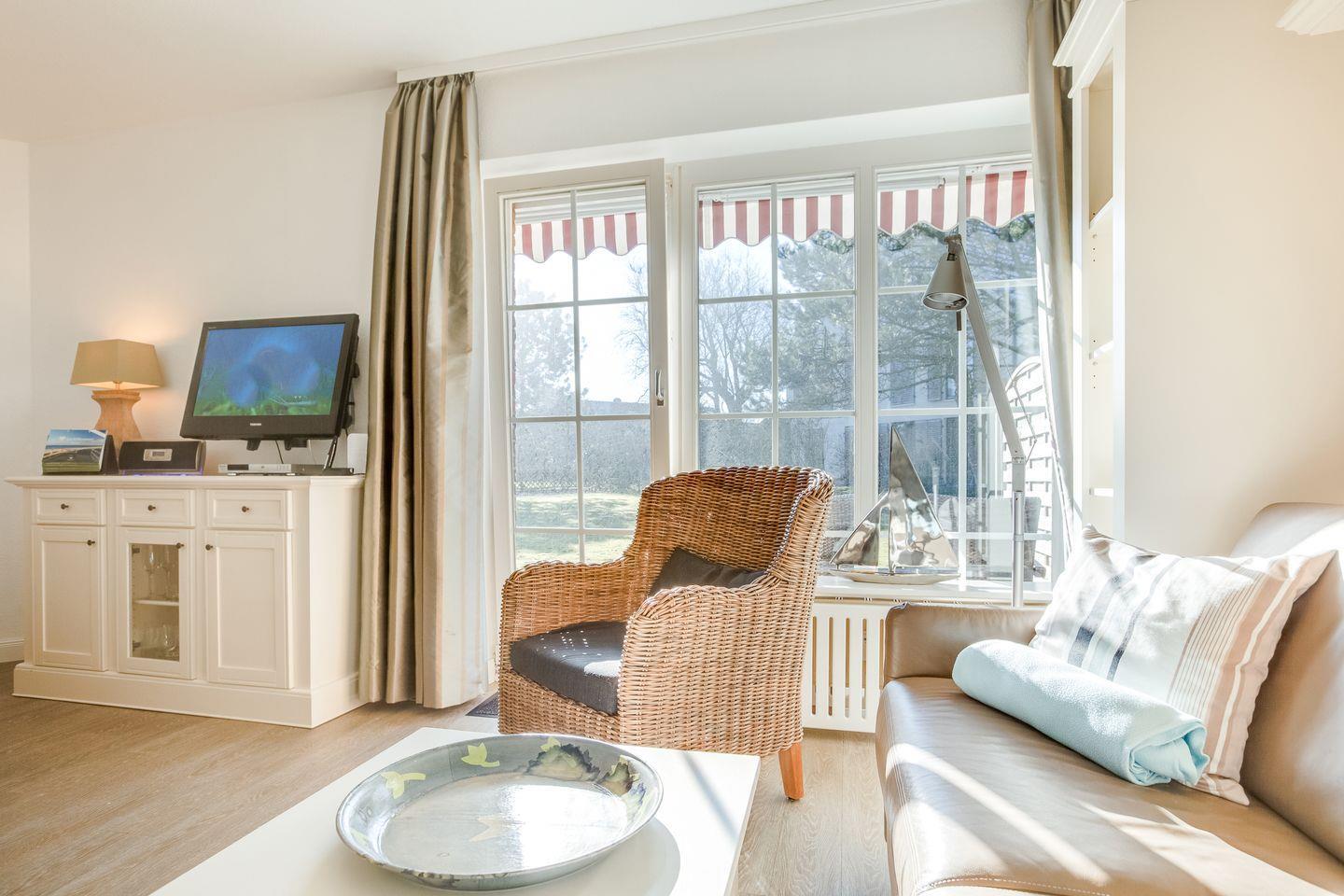 Die Küchenzeile ist in den Wohnbereich integriert und voll ausgestattet. Ein Highlight ist die großzügige, möblierte Terrasse mit dem sylt-typischen Strandkorb. Im Untergeschoss erwartet Sie ein weiterer Raum mit Doppelbett sowie ein Badezimmer mit Dusche und WC.