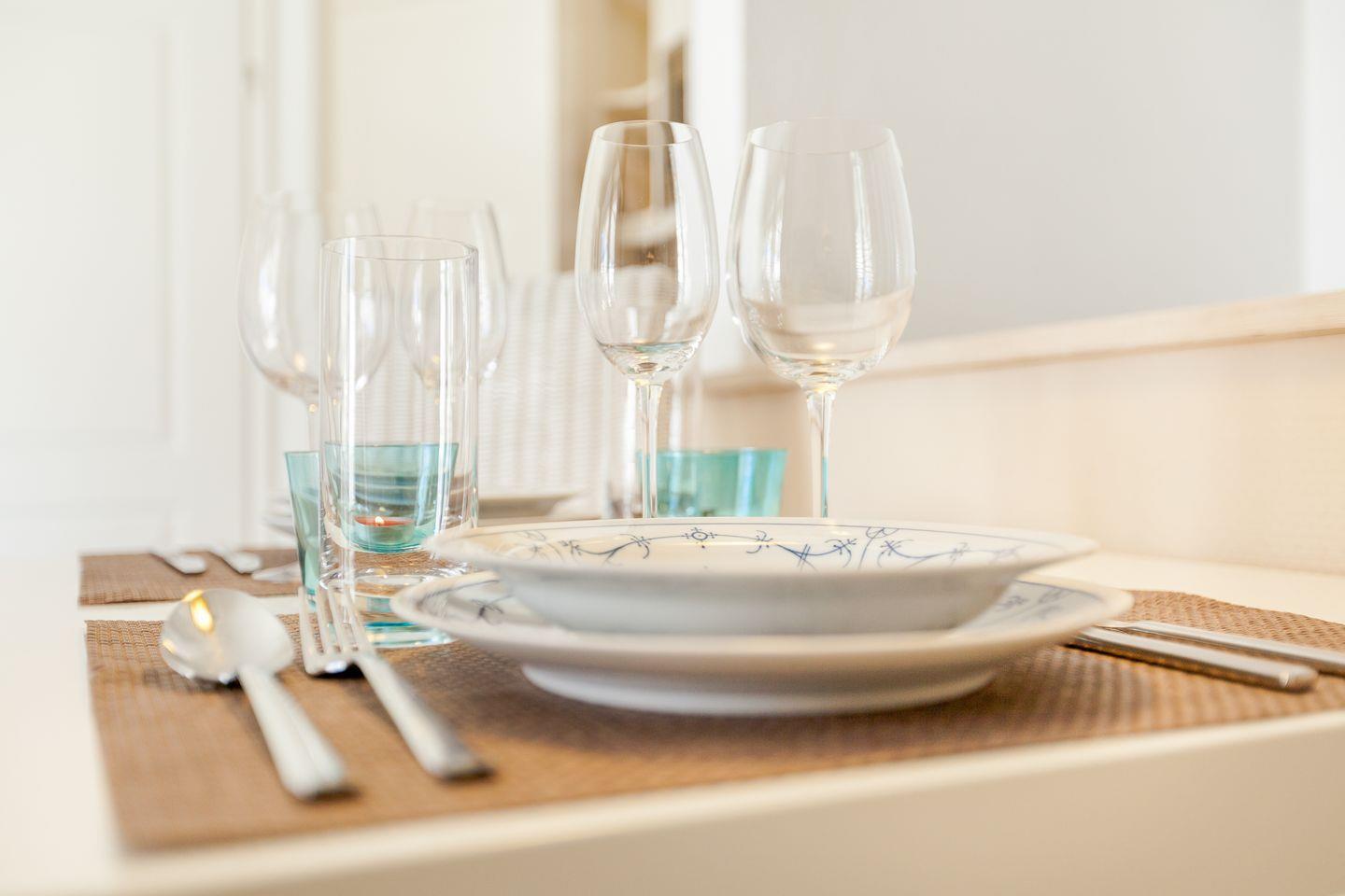 EG: Wohnraum mit Flatscreen-TV, iPod Dockingstation, Stereoanlage, CD-Player, DVD-Player und Telefonflatrate ins deutsche Festnetz, integrierte Küche mit Backofen, Geschirrspülmaschine, Mikrowelle, Kaffeemaschine, Nespresso-Maschine und Wasserkocher