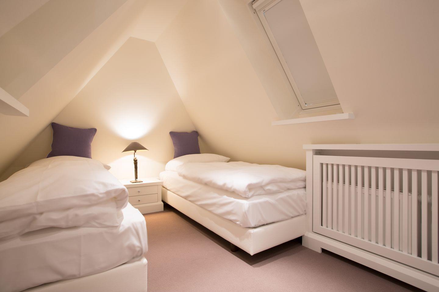 Im Dachgeschoss können Ihre Kinder sich ideal zurückziehen und in ihrem Reich "chillen". Hier stehen zwei Einzelbetten zur Verfügung, wunderschöne Ausblicke aus den Veluxfenstern inklusive.