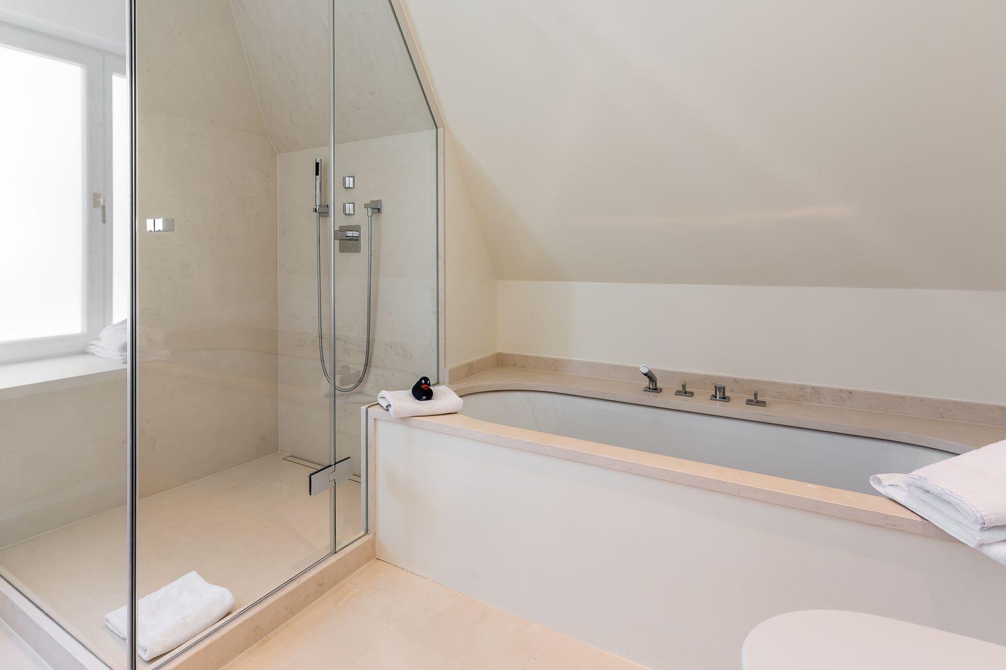 Im Obergeschoss stehen Ihnen gleich zwei Masterbedrooms zur Verfügung (ca. 180 x 200 cm). Der eine bietet Ihnen einen zauberhaften Ausblick auf die Wenningstedter Dünen, mit Luxus Bad En-Suite. Der andere wunderschöne Schlafraum lässt Sie sogar auf einen kleinen Balkon austreten und den Wenningstedter Dorfteich erblicken. Ein weiteres, beeindruckendes Bad mit XXL-Dusche finden Sie gleich nebenan.