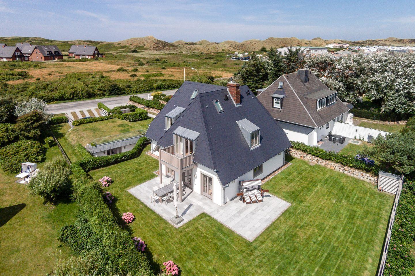 Apropos Traum: Ihr umlaufendes, sehr schön angelegtes Grundstück muss man einfach genießen. Sie können nach Belieben mit der Sonne "mitwandern". Ungestört Frühstücken im geschützten östlichen Bereich, Sonne pur auf Ihrer Terrasse tanken, oder aber am Abend die Sonne langsam hinter der Dünenkette im Westen untergehen sehen. Wertiges Gartenmobiliar inklusive zweier Luxus-Strandkörbe verstehen sich von selbst.