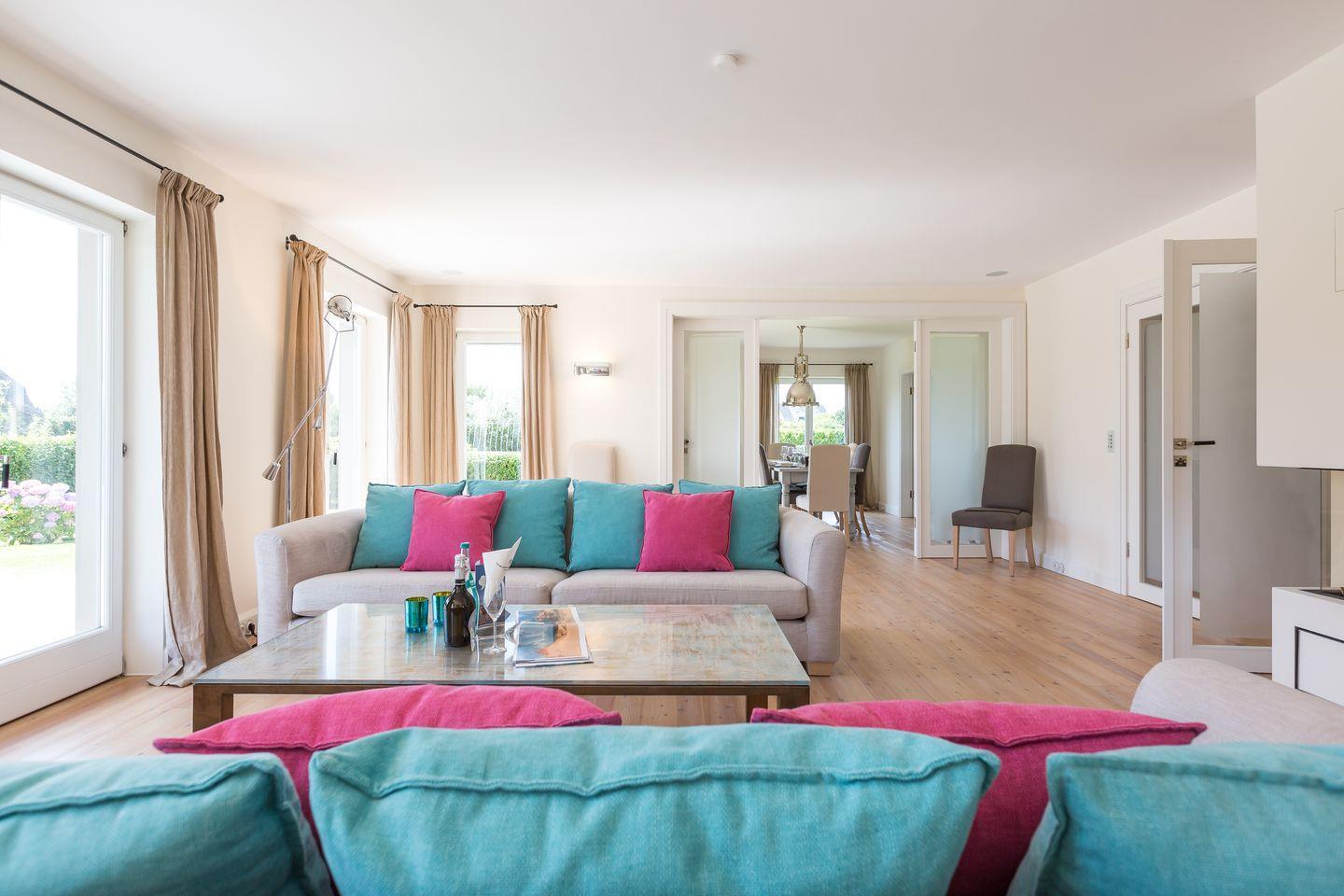 Freistehendes Luxus-Einzelhaus zwischen Wenningstedter Dorfteich und Dünen. Ca. 325 qm Nutzfläche (inkl. separatem Wellnessbereich) erwarten bis zu 8 glückliche Gäste im Erd-, Unter-, Ober- und Dachgeschoss.