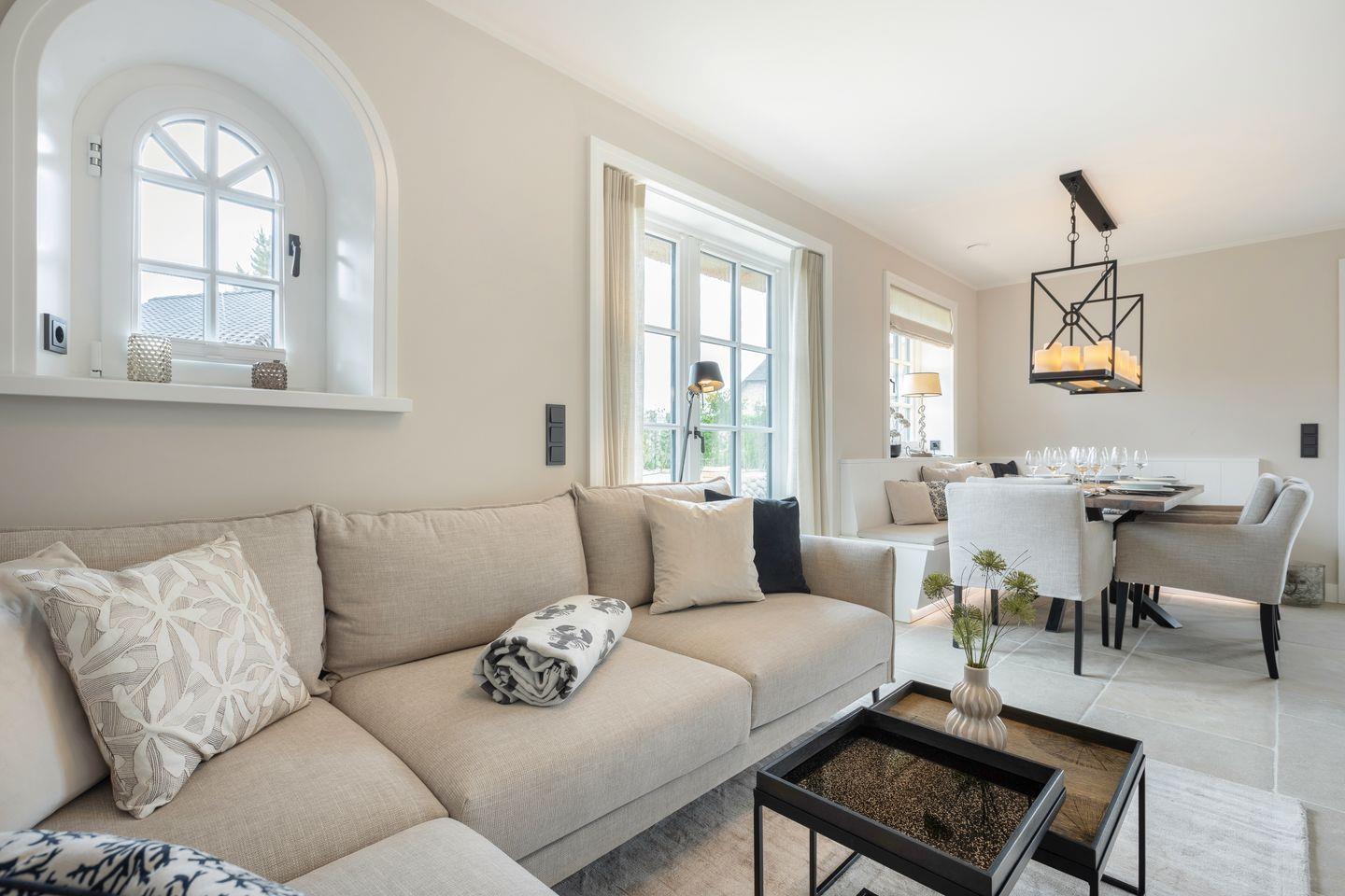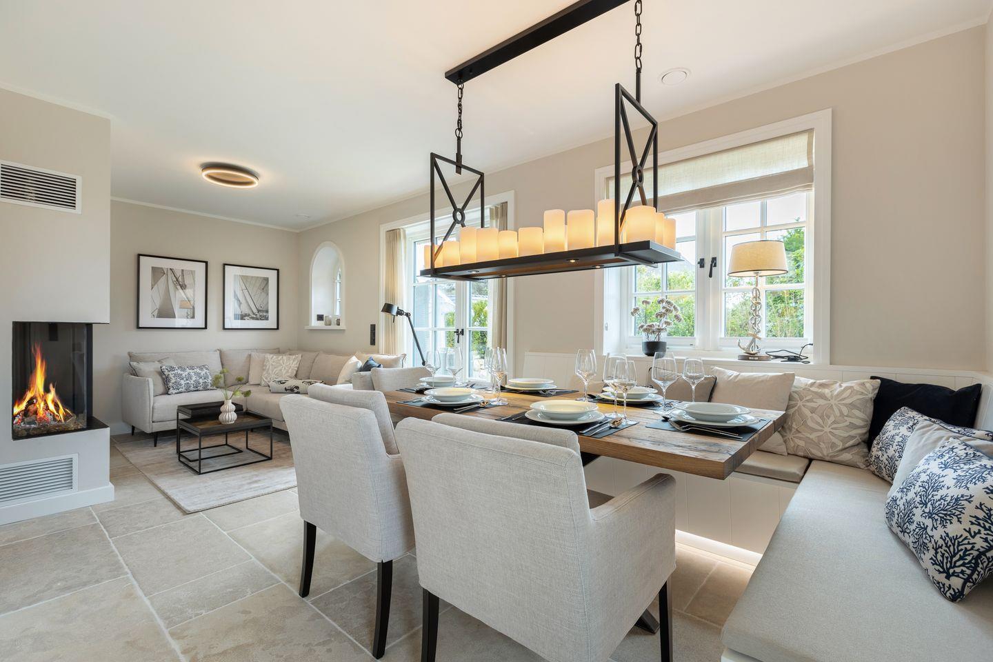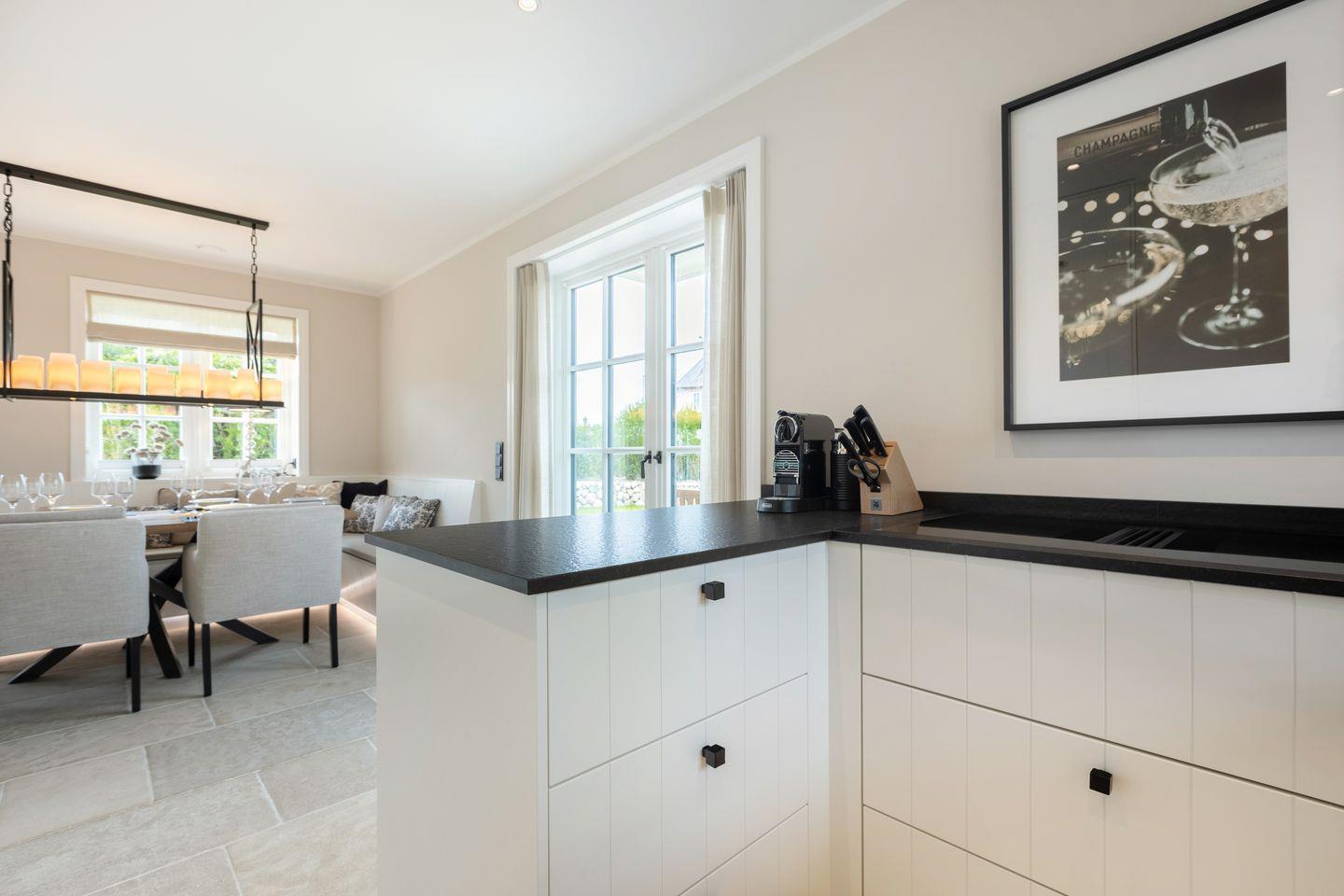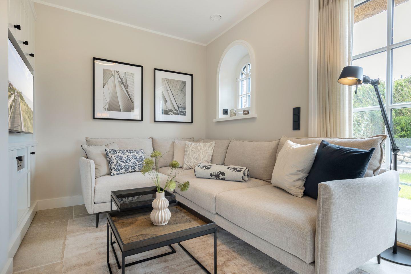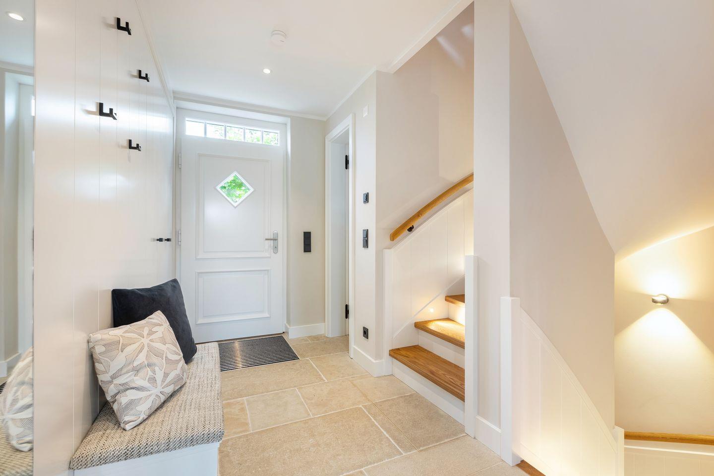 Erdgeschoss: Wohnbereich mit gemütlicher Sitzecke und großer Couch die sich an den Lehnen noch vergrößern lässt, Gaskamin sowie einem Smart TV und einer Musikanlage. Die offene im Wohnraum integrierte Küche mit Backofen und integrierter Mikrowelle, Induktionsherd, Kühl- und Gefrierkombination, Geschirrspülmaschine, Quooker und Weinschrank lässt keine Wünsche offen. Zusätzlich im Erdgeschoss befindet sich ein Gäste-WC. Die Gartenterrasse mit Gartenmöbeln und Strandkorb lädt zum Verweilen ein und Sie können den ganzen Tag die Sonne genießen.