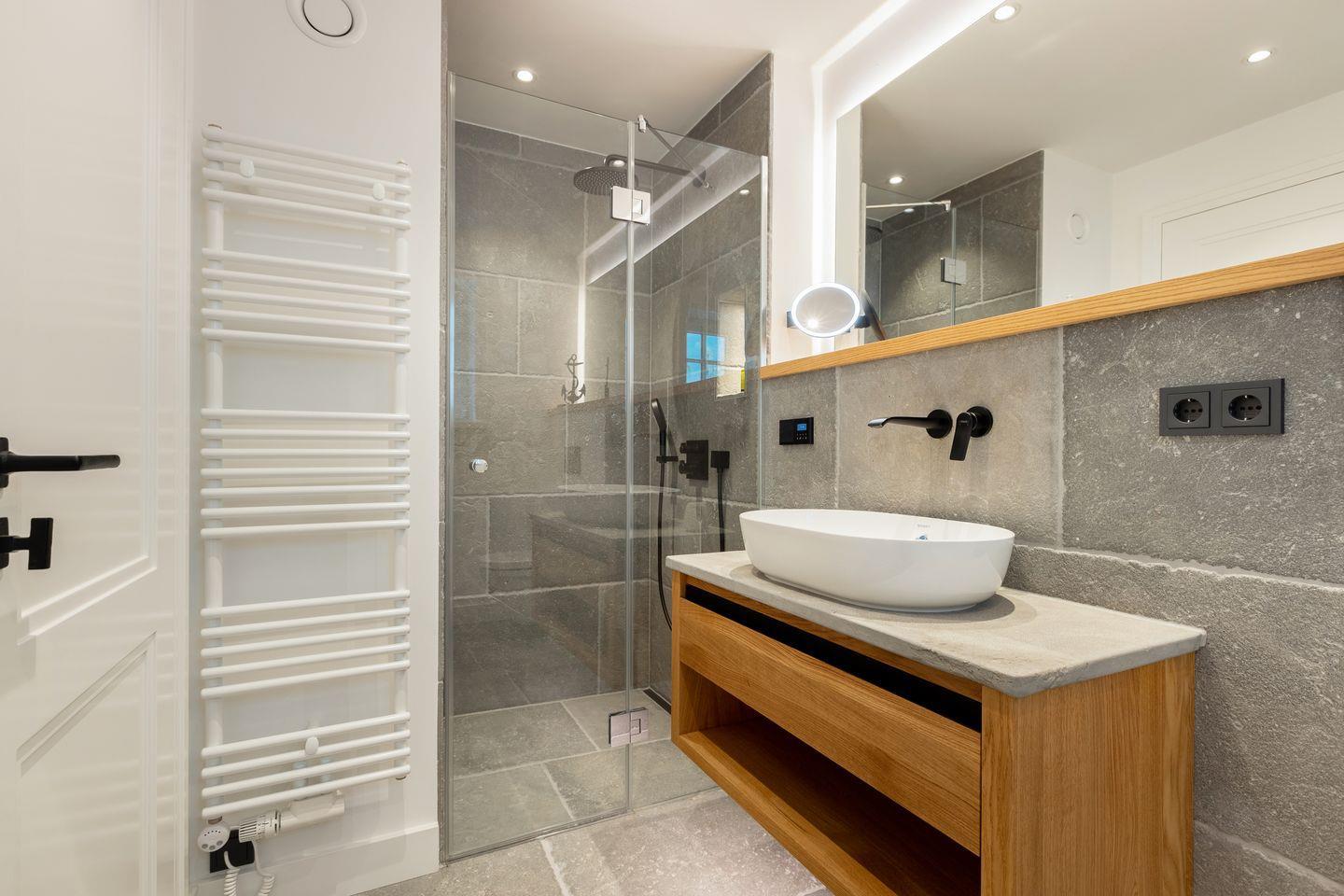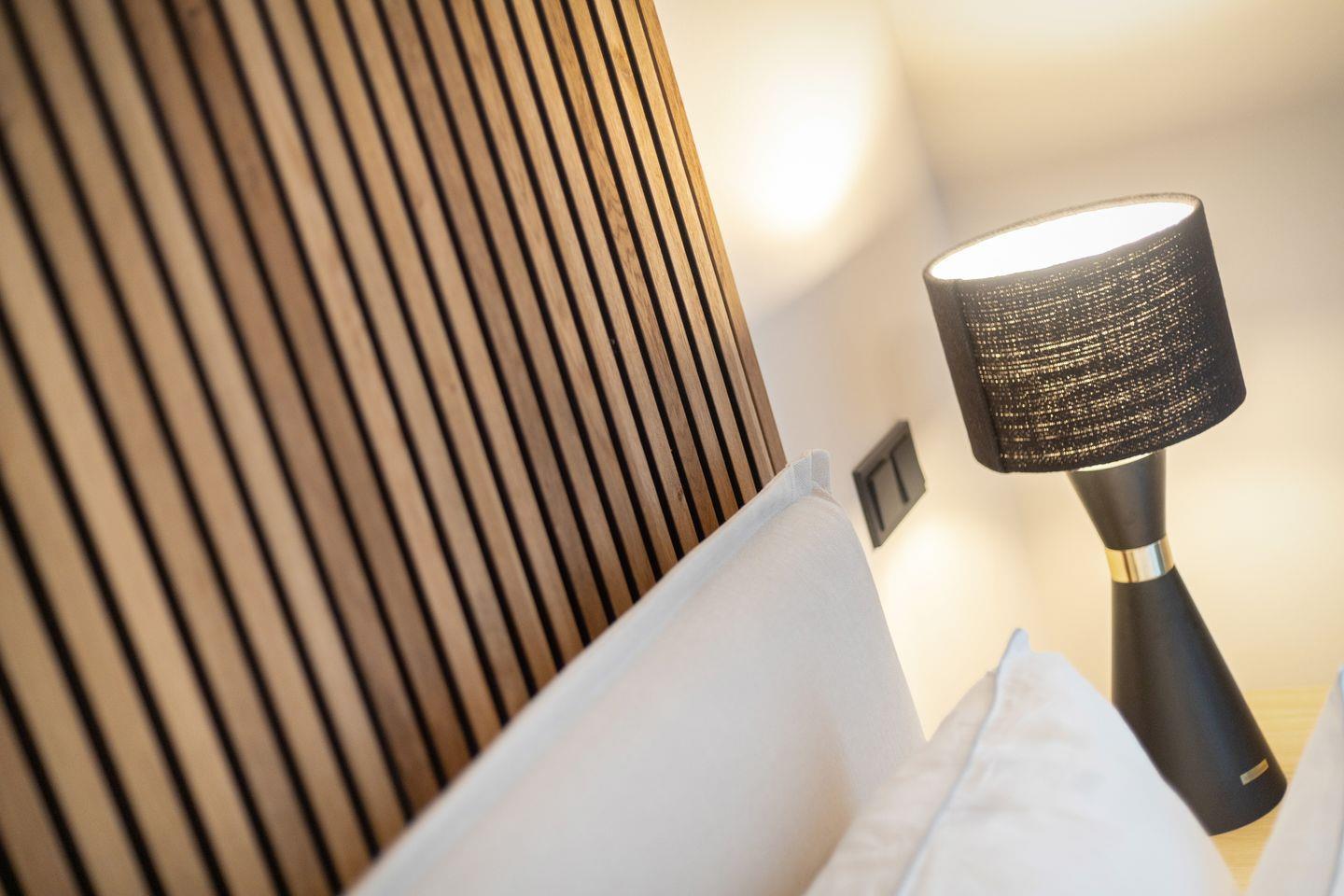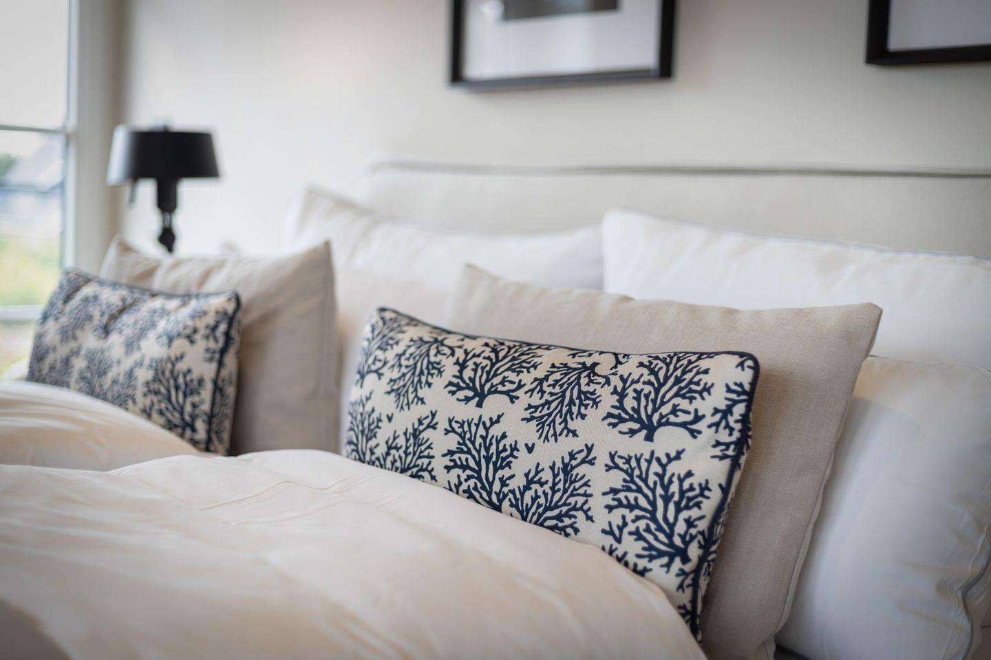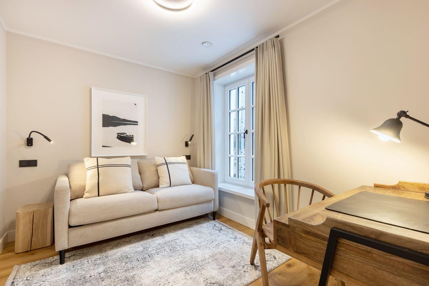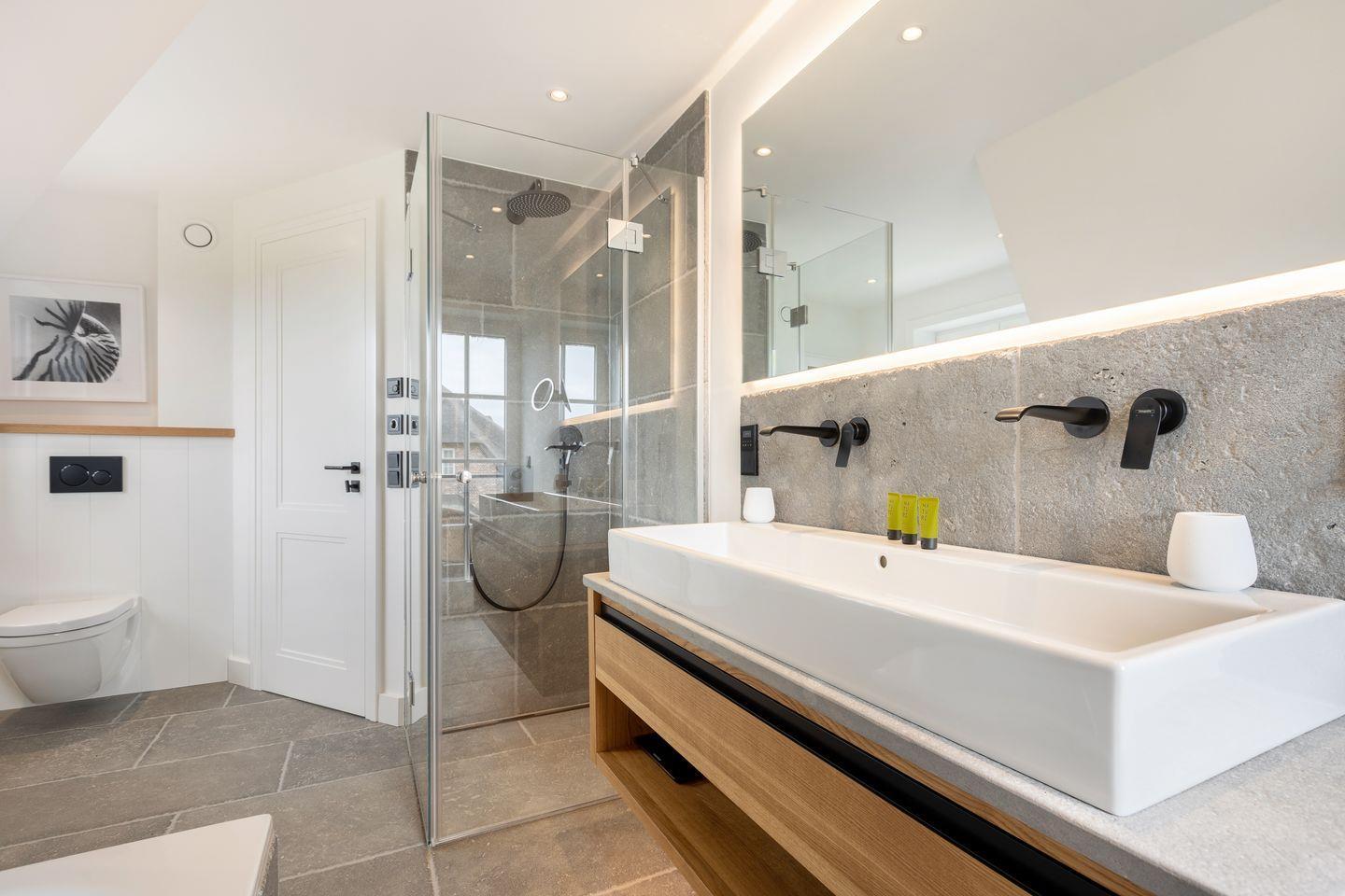 Obergeschoss: Schlafraum mit Doppelbett (180 x 200cm) und begehbarem Kleiderschrank. Von Ihrem nach Westen ausgerichteten Balkon haben Sie sogar einen kleinen Meerblick.[nbsp] Das Bad mit Badewanne/Dusche [&] WC ist stilvollendet und mit hochwertigen Armaturen ausgestattet.