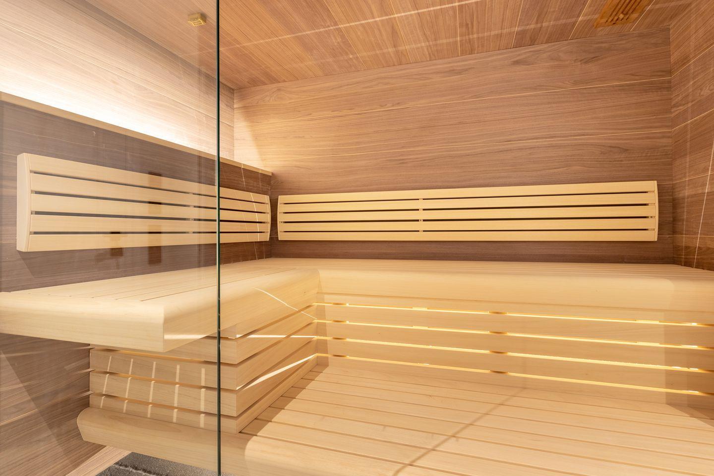 Untergeschoss: 1 Raum mit Doppelbett (180 x 200cm) und Bad en Suite mit Dusche / WC. Ein zusätzlicher Raum kann als Office benutzt werden und ist zusätzlich mit einer Schlafcouch (160 x 200cm) versehen. In der großzügigen Sauna mit Dusche können Sie wunderbar entspannen. In der Dusche steht auch ein Schlauch zum Kneippen zur Verfügung. Nach dem Saunagang können Sie es sich auf Ihrem elektrisch verstellbaren Liegestuhl bequem machen. Zusätzlich befindet sich auf dieser Ebene noch die Waschmaschine sowie ein Trockner.