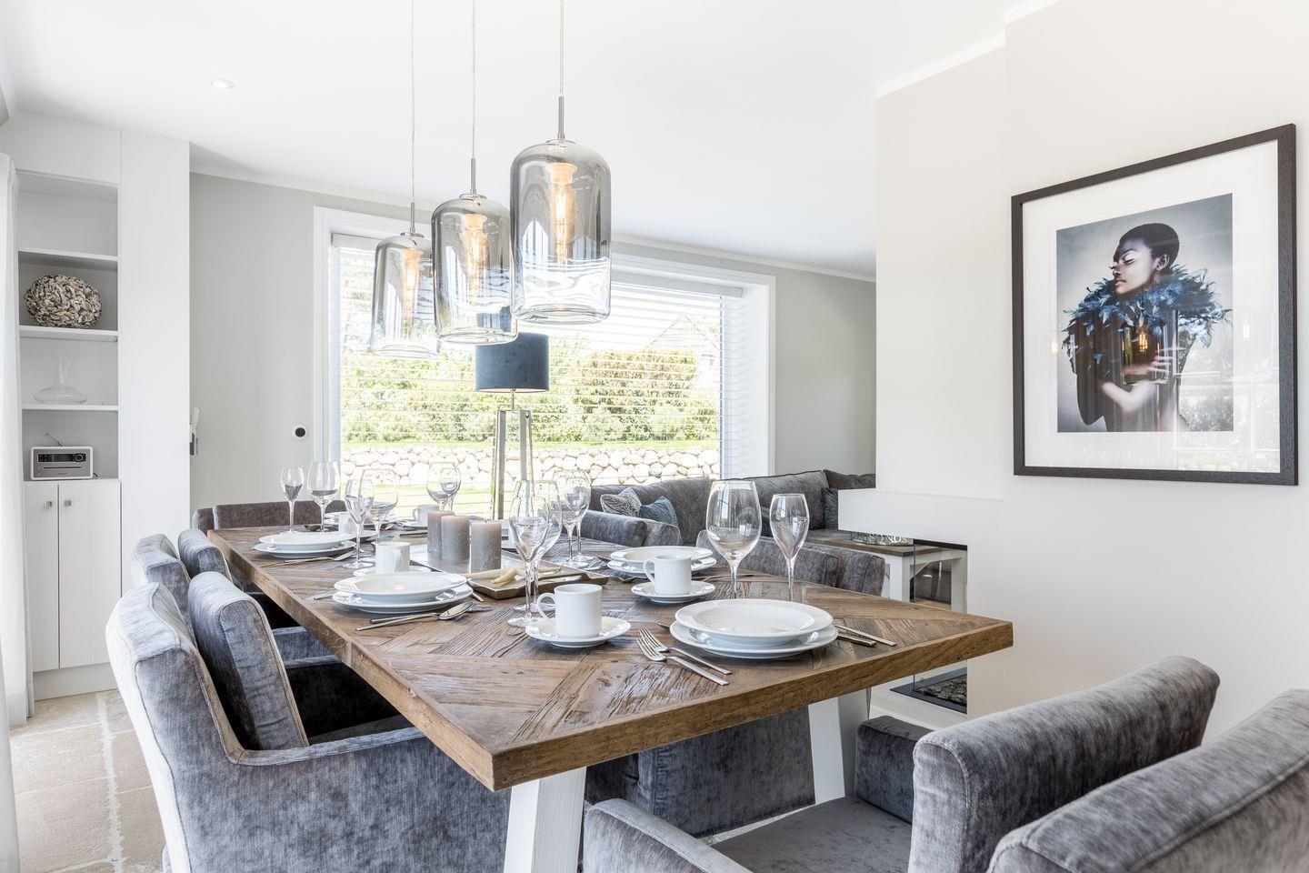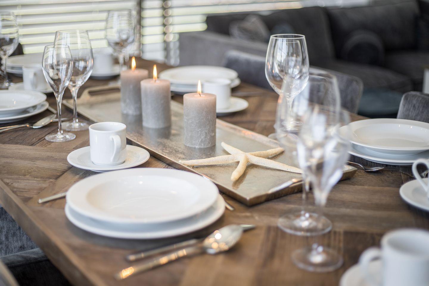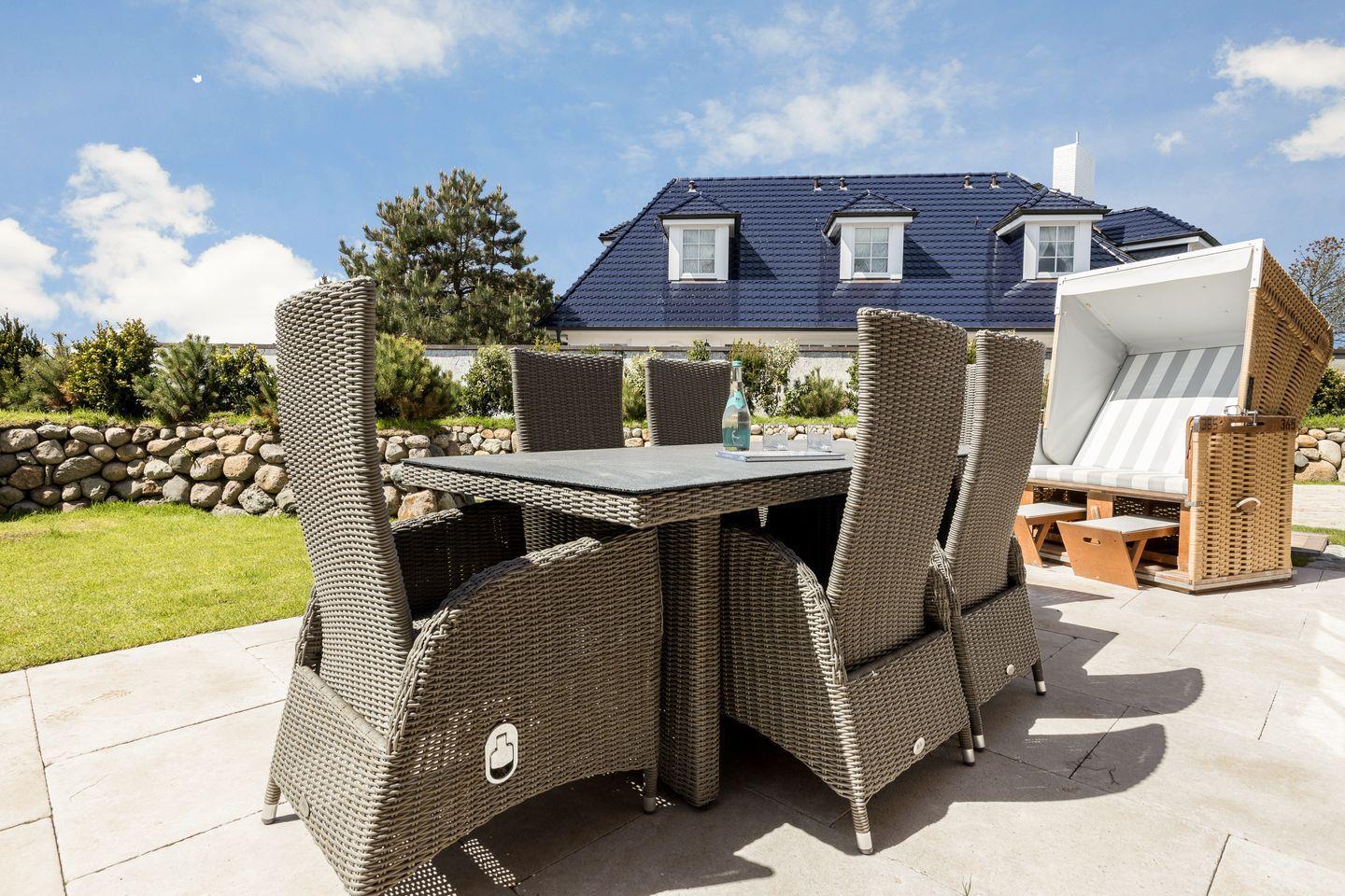 dem großen Esstisch oder – sofern das Wetter mitspielt – auf der hübschen Gartenterrasse nebst Strandkorb. Bitte beachten Sie, dass das Grillen auf dem Grundstück, wegen der Reeteindeckung des Hauses, nicht gestattet ist.