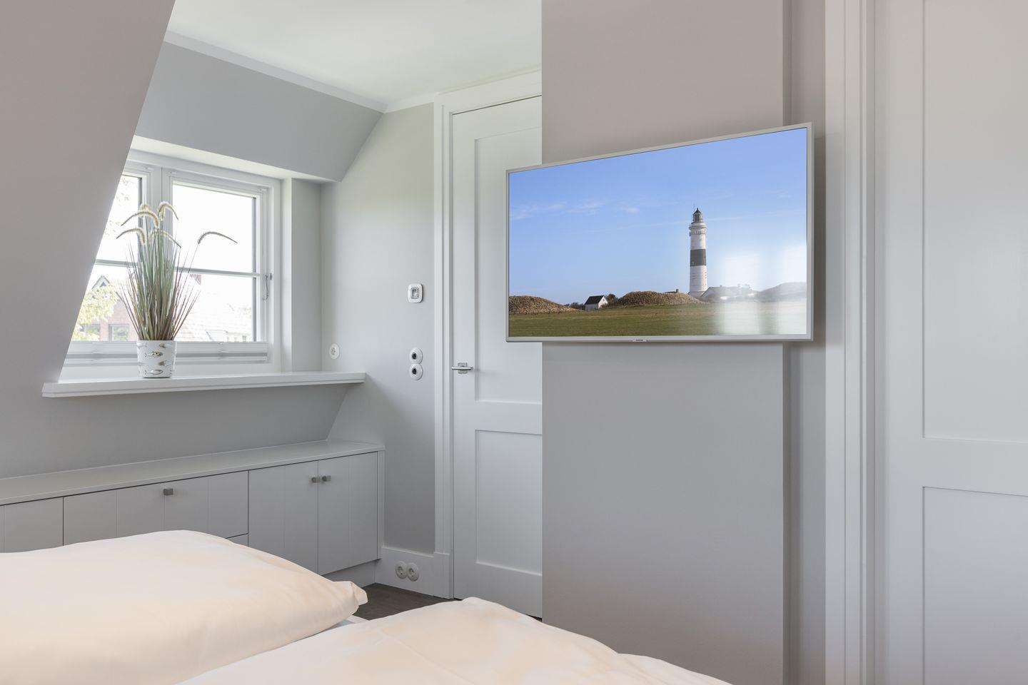OG: 1 Schlafzimmer mit Doppelbett (180 x 200cm) und Flatscreen-TV; Duschbad