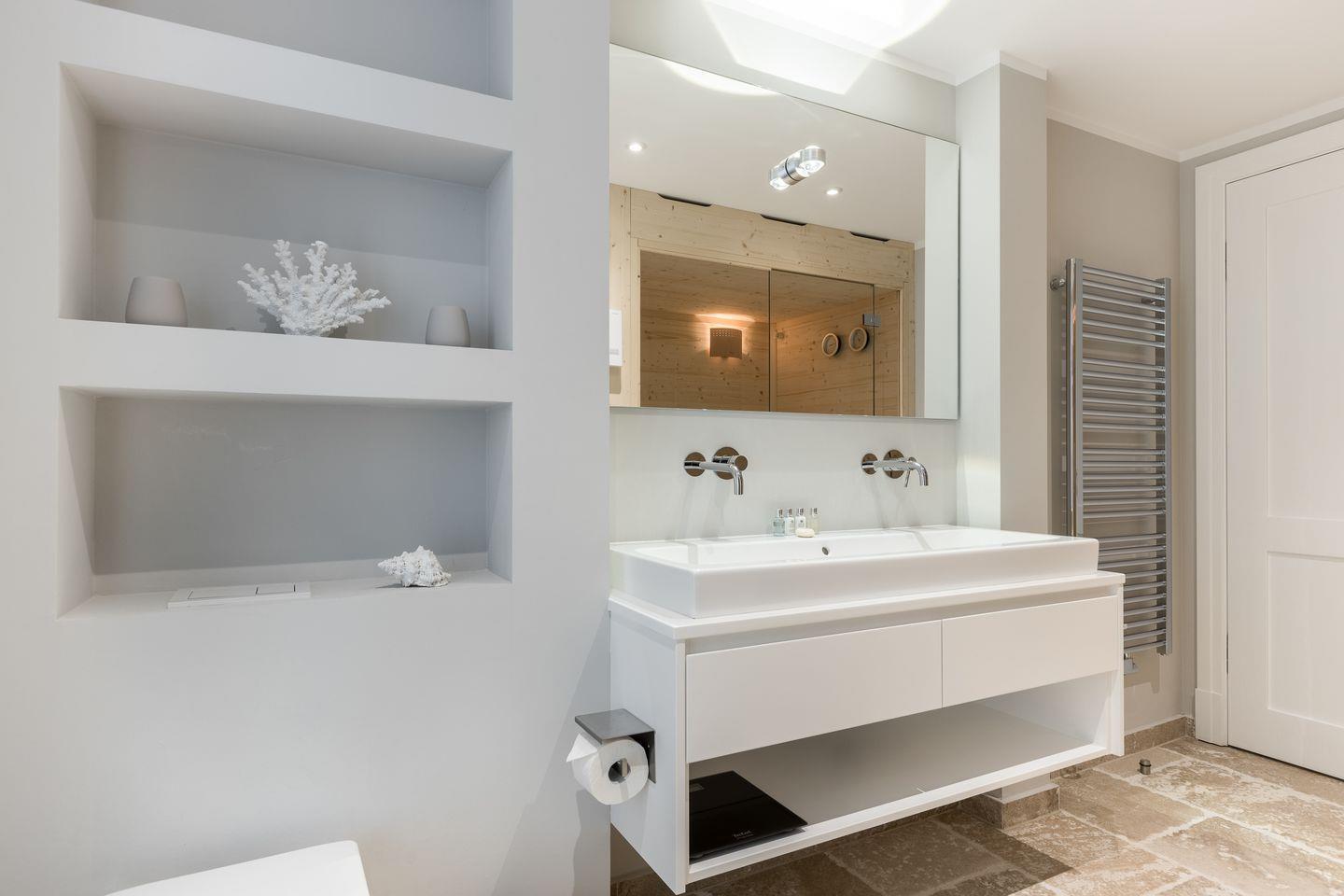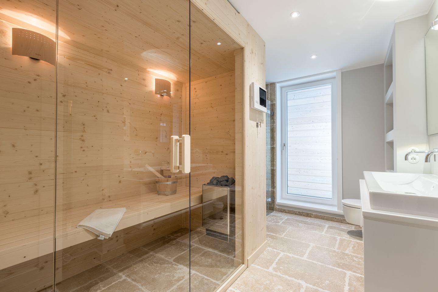 wo sich zwei weitere Schlafzimmer befinden. Das dazugehörige sehr große Duschbad kann sogar mit einer Sauna auftrumpfen.