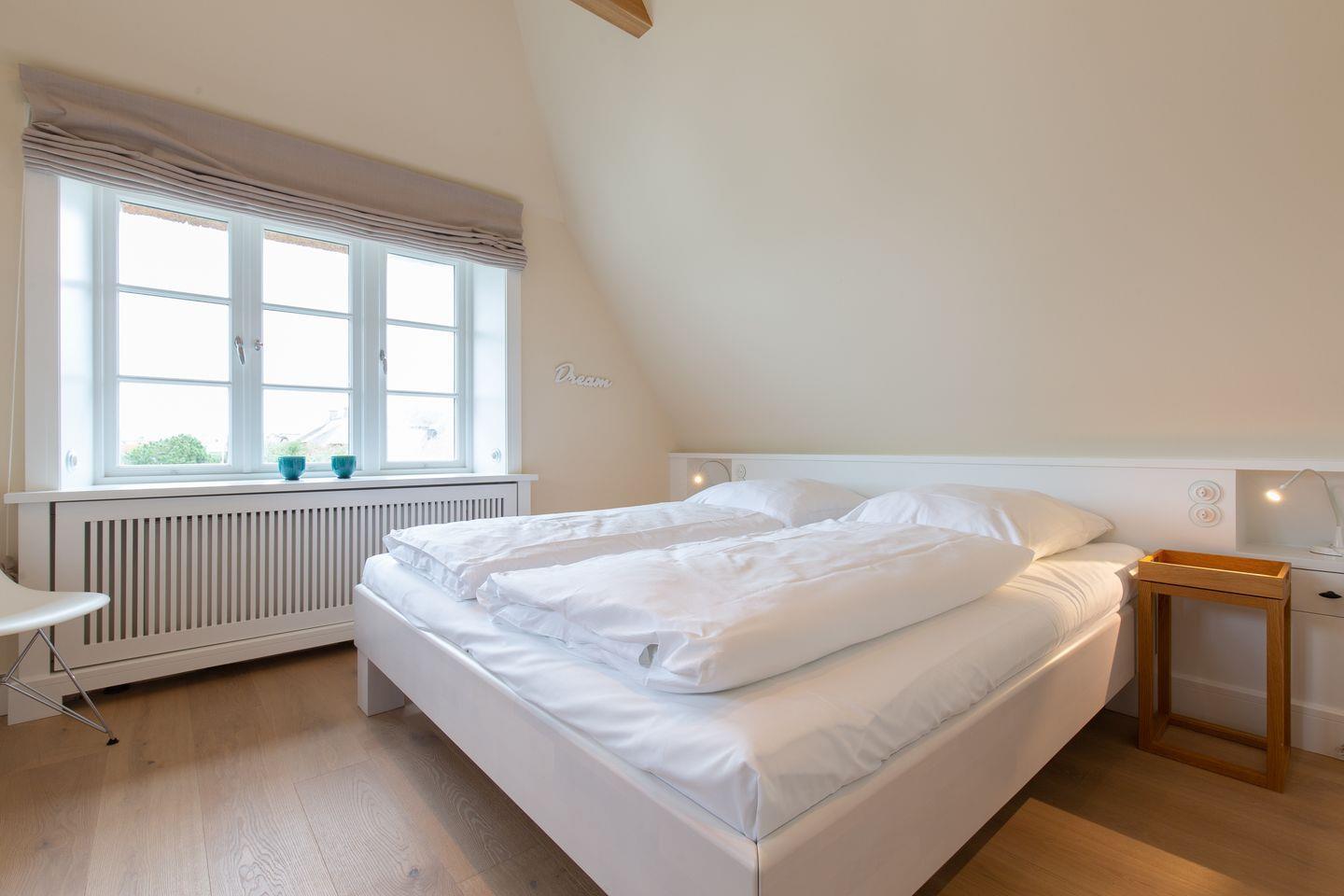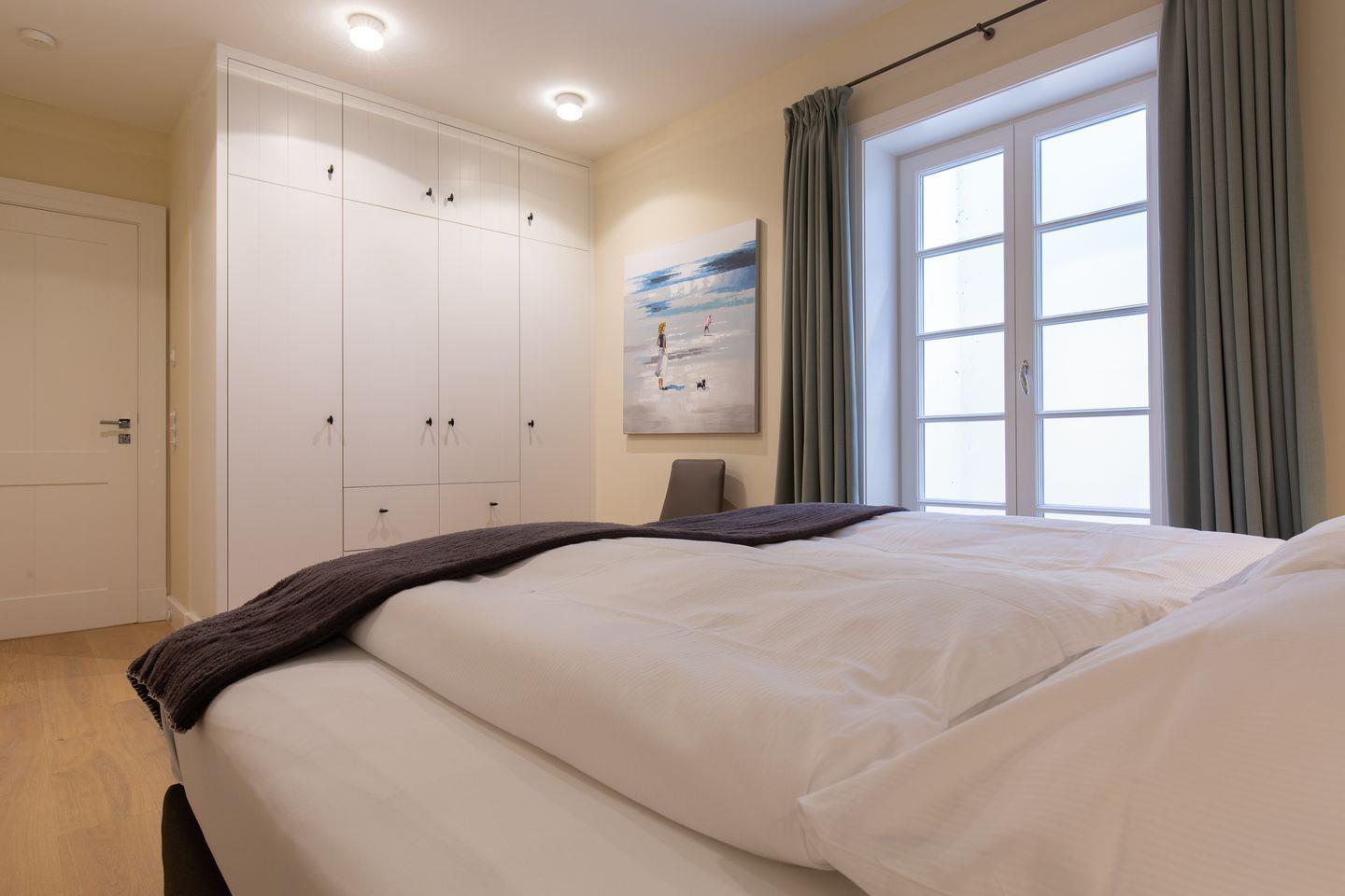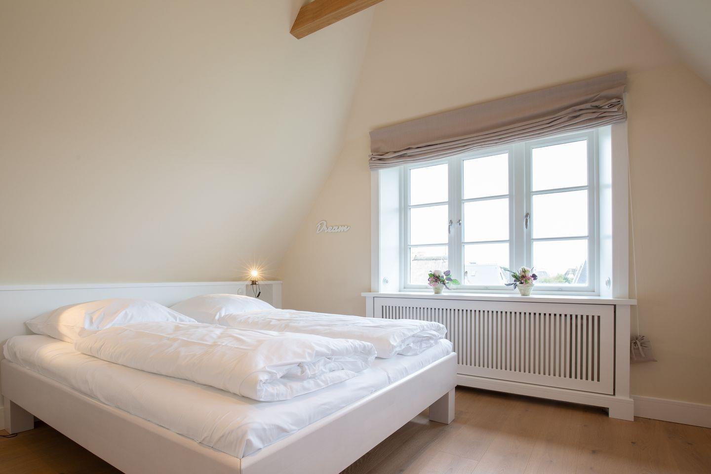 Im Obergeschoss dürfen Sie sich auf zwei wunderschöne Schlafräume (ca. 180 x 200cm) freuen. Extra hohe Decken mit sichtbarer, offener Balkenlage schafft eine wahrlich traumhafte Raumatmosphäre. Sehr schöne Tischlereinbauten lassen auch Ihre größere Urlaubsgarderobe verstauen.