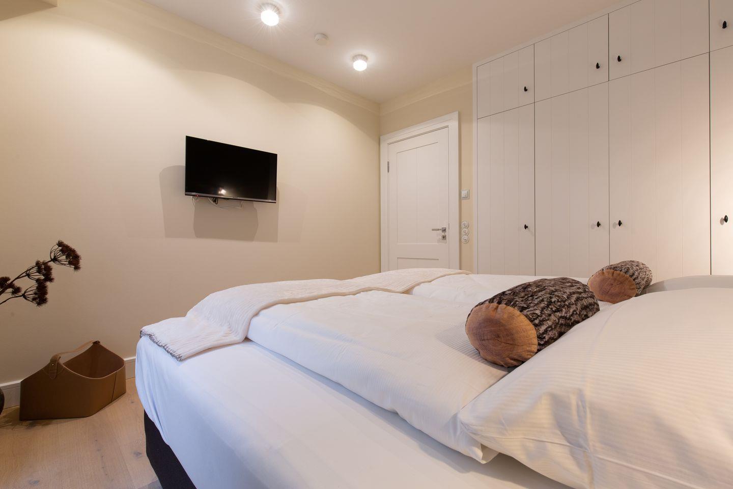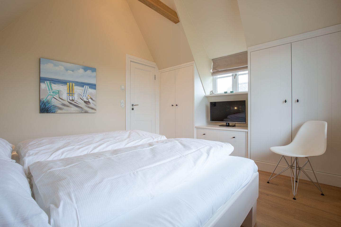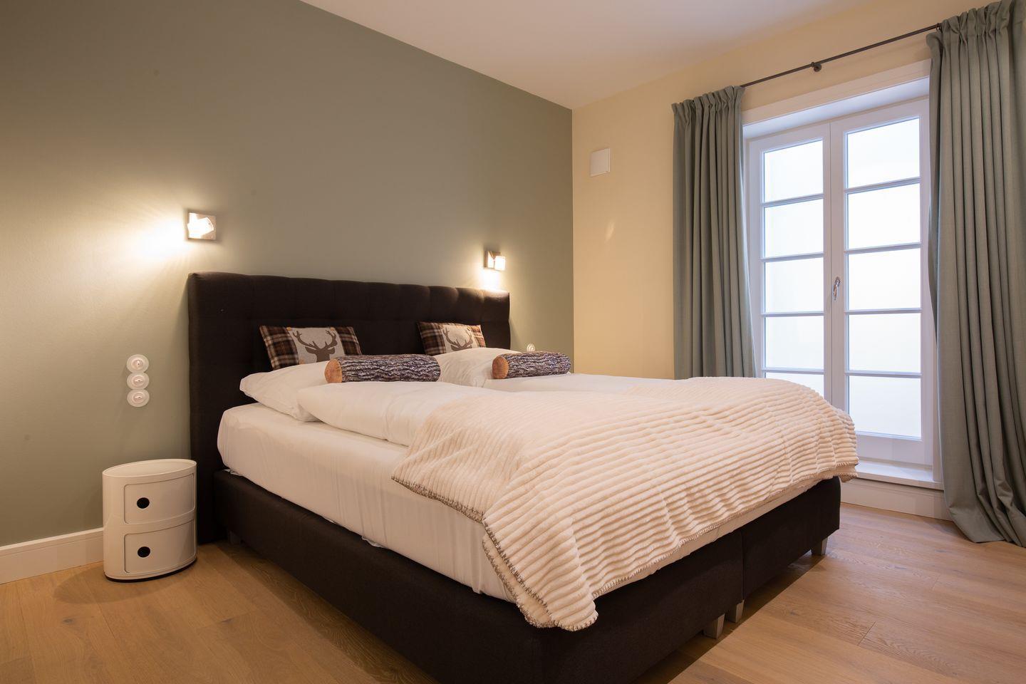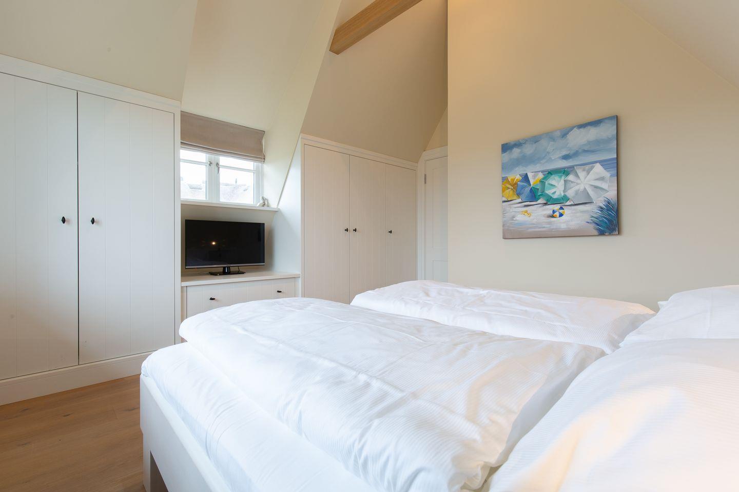Im Obergeschoss dürfen Sie sich auf zwei wunderschöne Schlafräume (ca. 180 x 200cm) freuen. Extra hohe Decken mit sichtbarer, offener Balkenlage schafft eine wahrlich traumhafte Raumatmosphäre. Sehr schöne Tischlereinbauten lassen auch Ihre größere Urlaubsgarderobe verstauen.