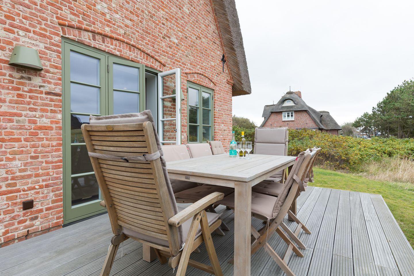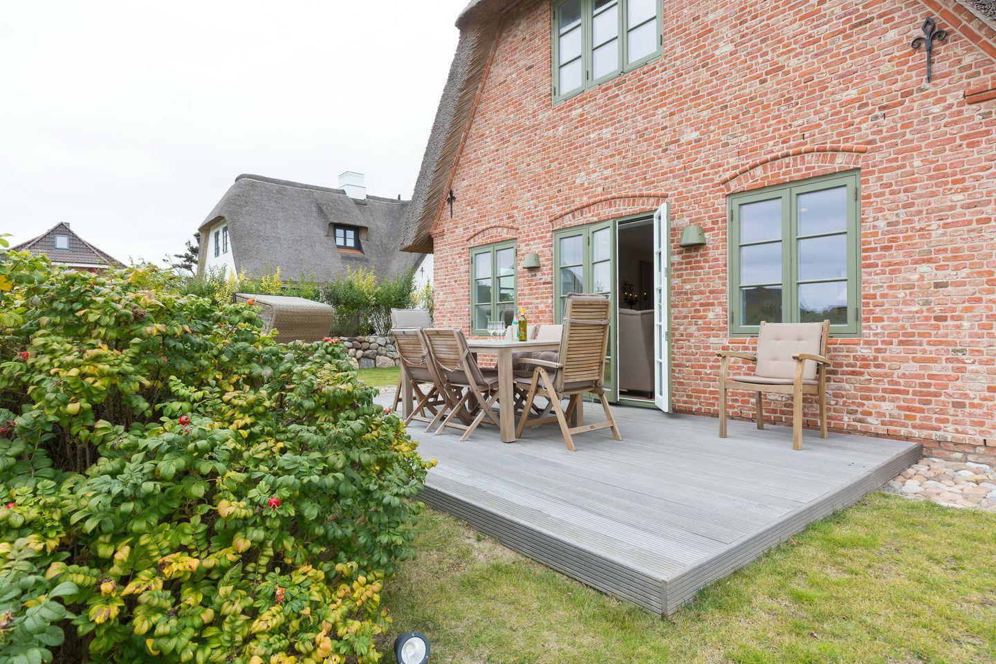 Ihr eigenes, sehr schön angelegtes Grundstück ist ein Traum. Hier laden verschiedene "Ecken" ein, die Sylter Sonne zu genießen und das nahe Meer rauschen zu hören. Ein besonders schönes Kleinod stellt zweifelsohne der dünengesäumte Strandkorbbereich dar.