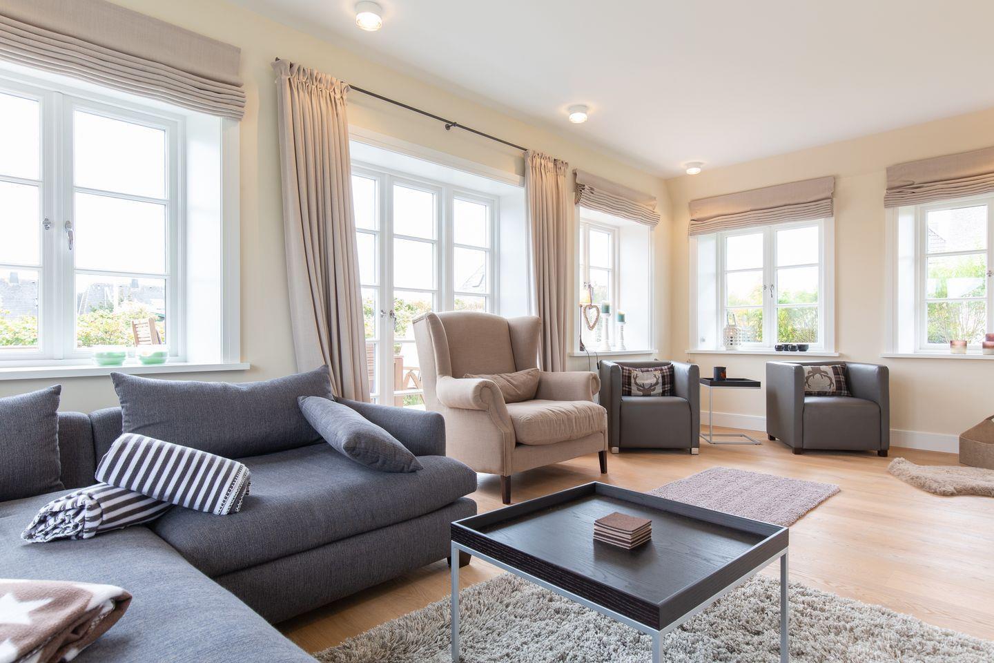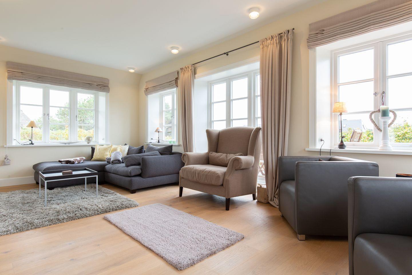 Freistehendes State-of-the-art-Einzelhaus in strandnaher Lage Wenningstedts. Ca. 180 qm Nutzfläche im Erd-, Ober- und Untergeschoss empfangen bis zu 8 Personen.