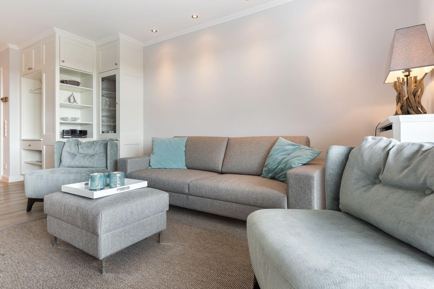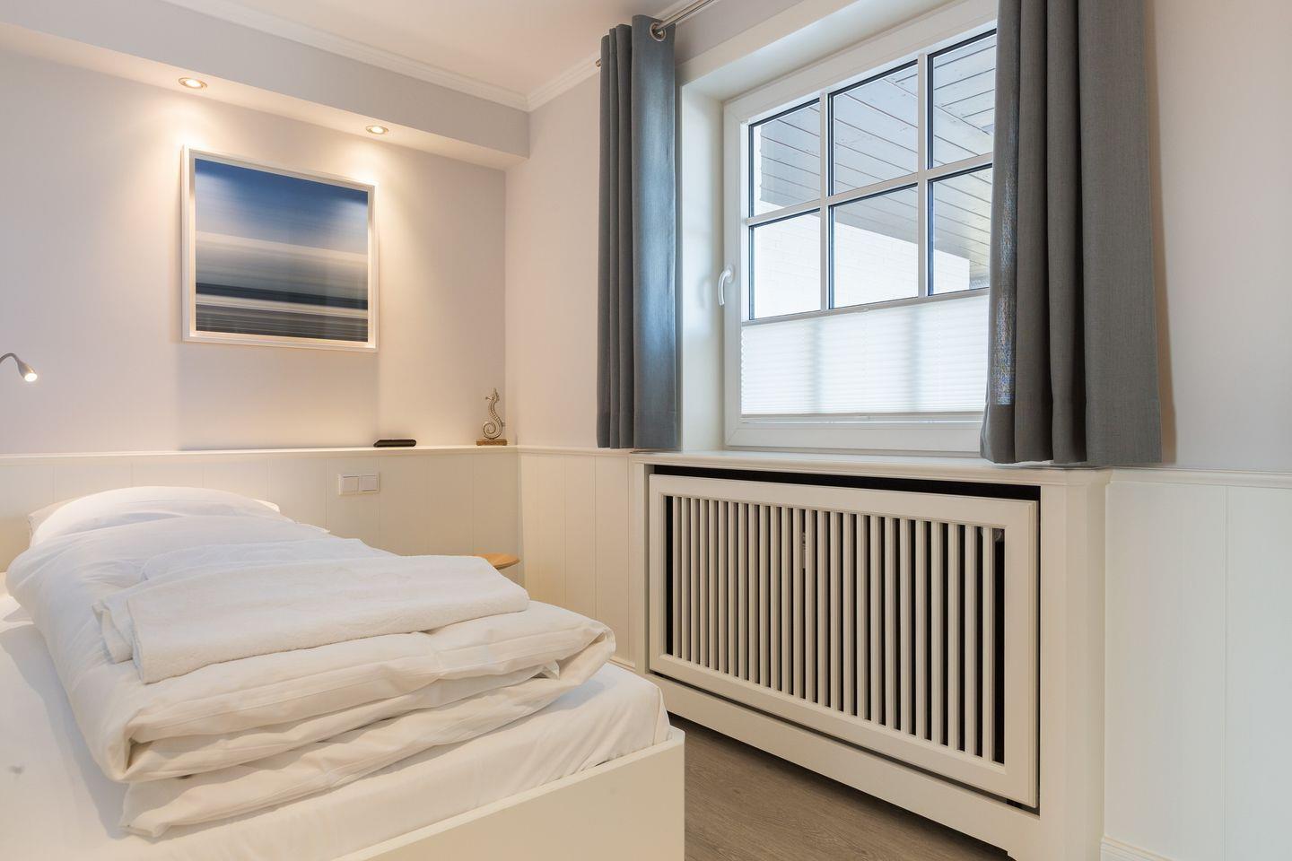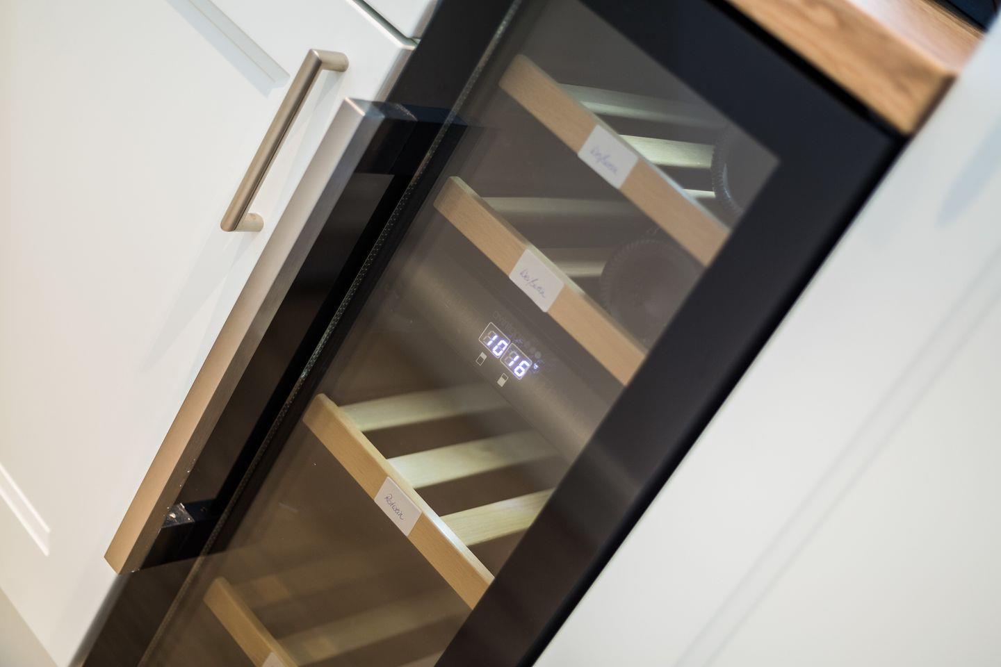 Klare Strukturen und helle Farben sorgen im Inneren des Hauses für ein modernes Ambiente. Die offene Küche ist geschickt durch einen Raumtrenner optisch vom Wohnbereich abgetrennt und lässt mit Weinkühlschrank, Induktionsherd und Nespresso-Kaffeemaschine keine Wünsche offen. Im Erdgeschoss finden Sie außerdem ein Schlafzimmer mit einem Einzelbett und ein Duschbad.