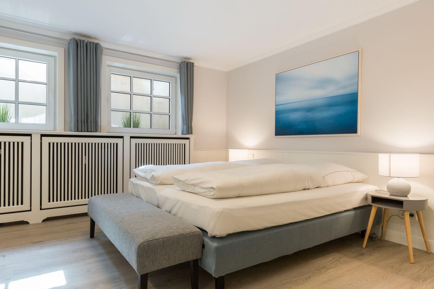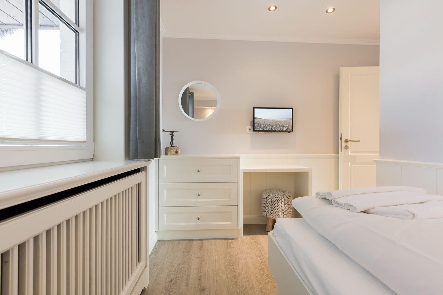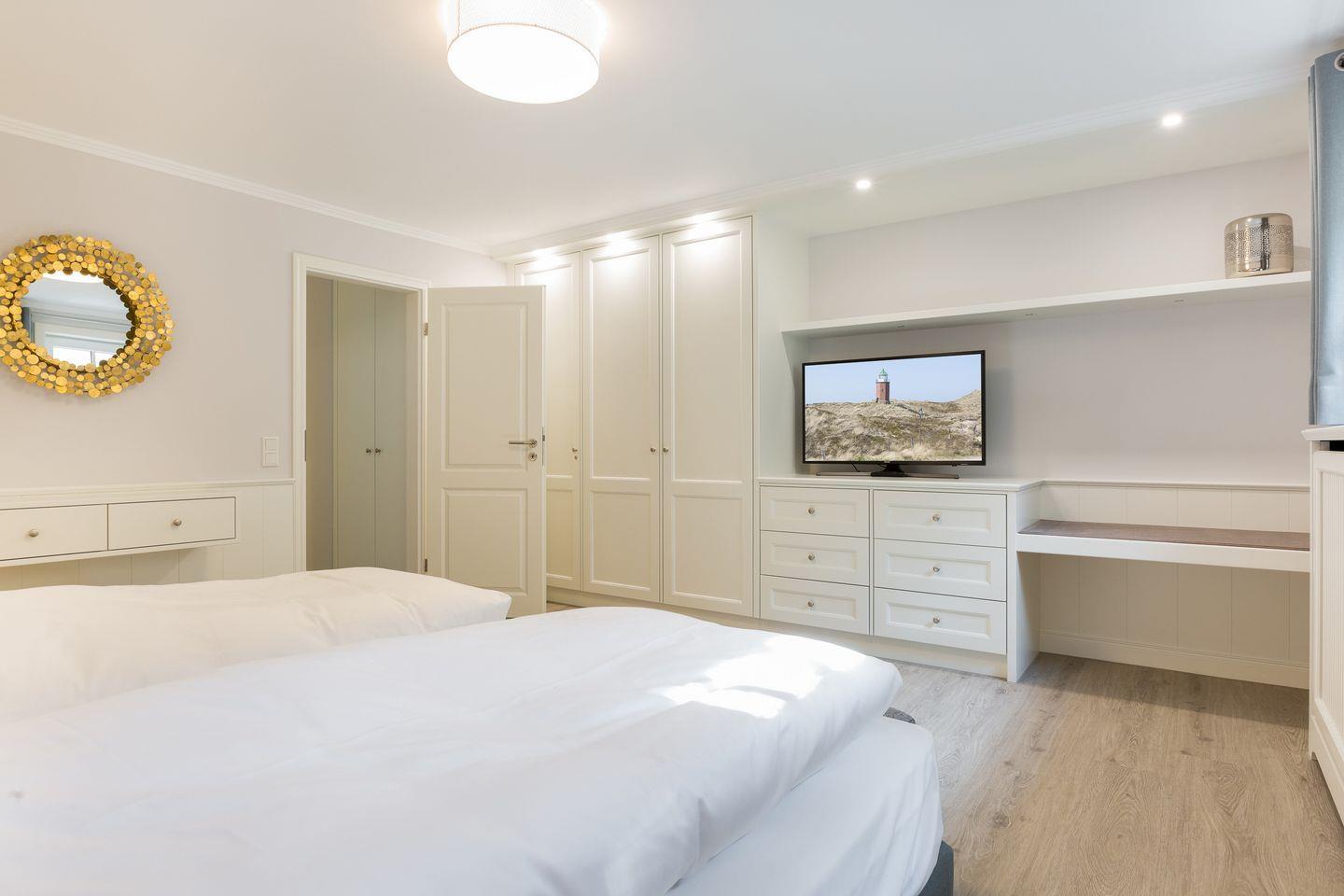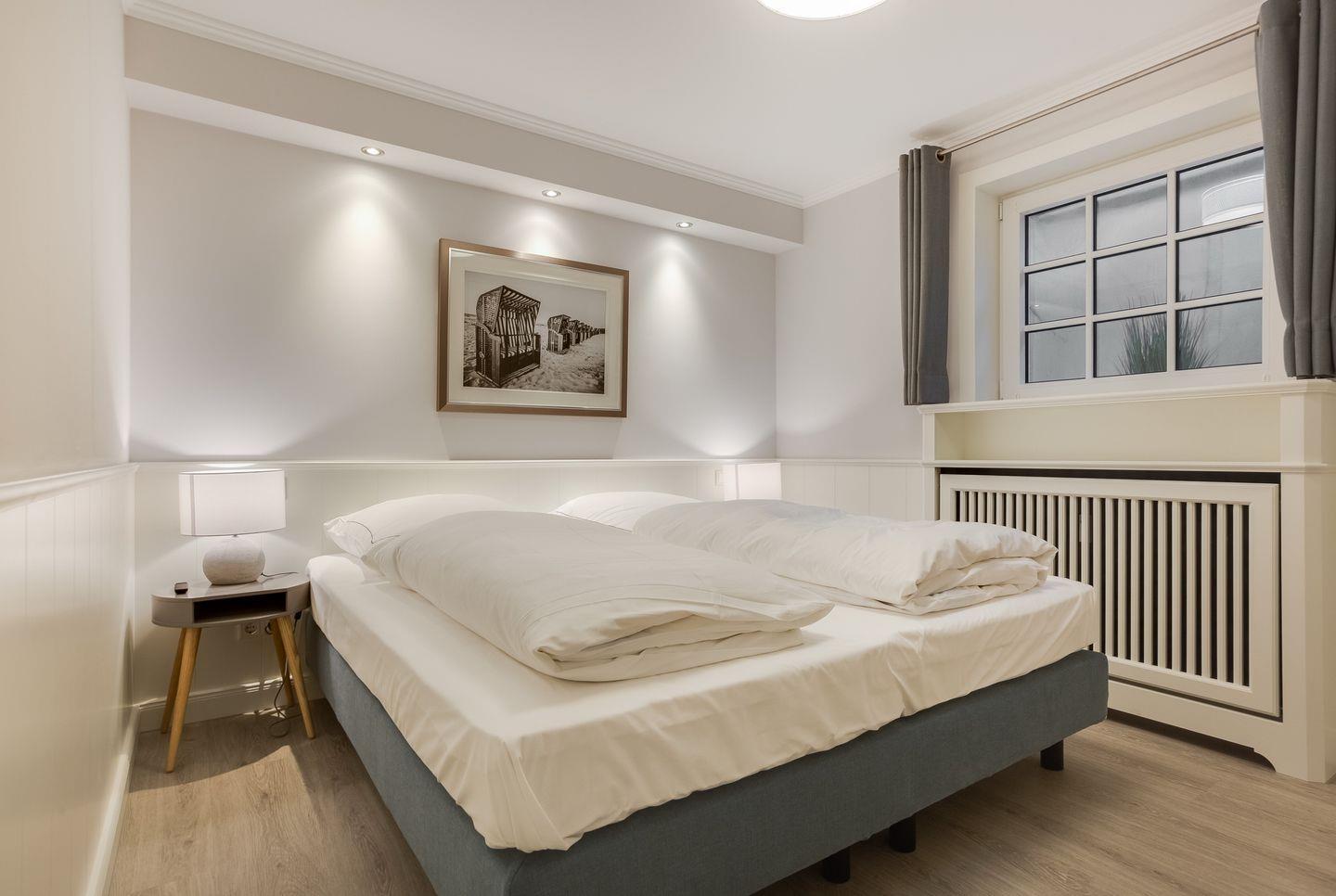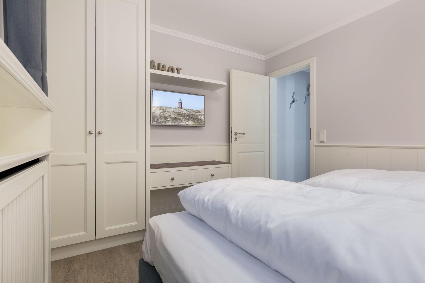 Der Souterrainbereich des Hauses verfügt über zwei Schlafräume mit je einem Doppelbett, viel Schrankplatz und Flat-TV. In jedem der Räume ist ein Kinderbett zustellbar. Auf gleicher Ebene erwartet Sie außerdem ein weiteres Badezimmer mit Dusche und WC.